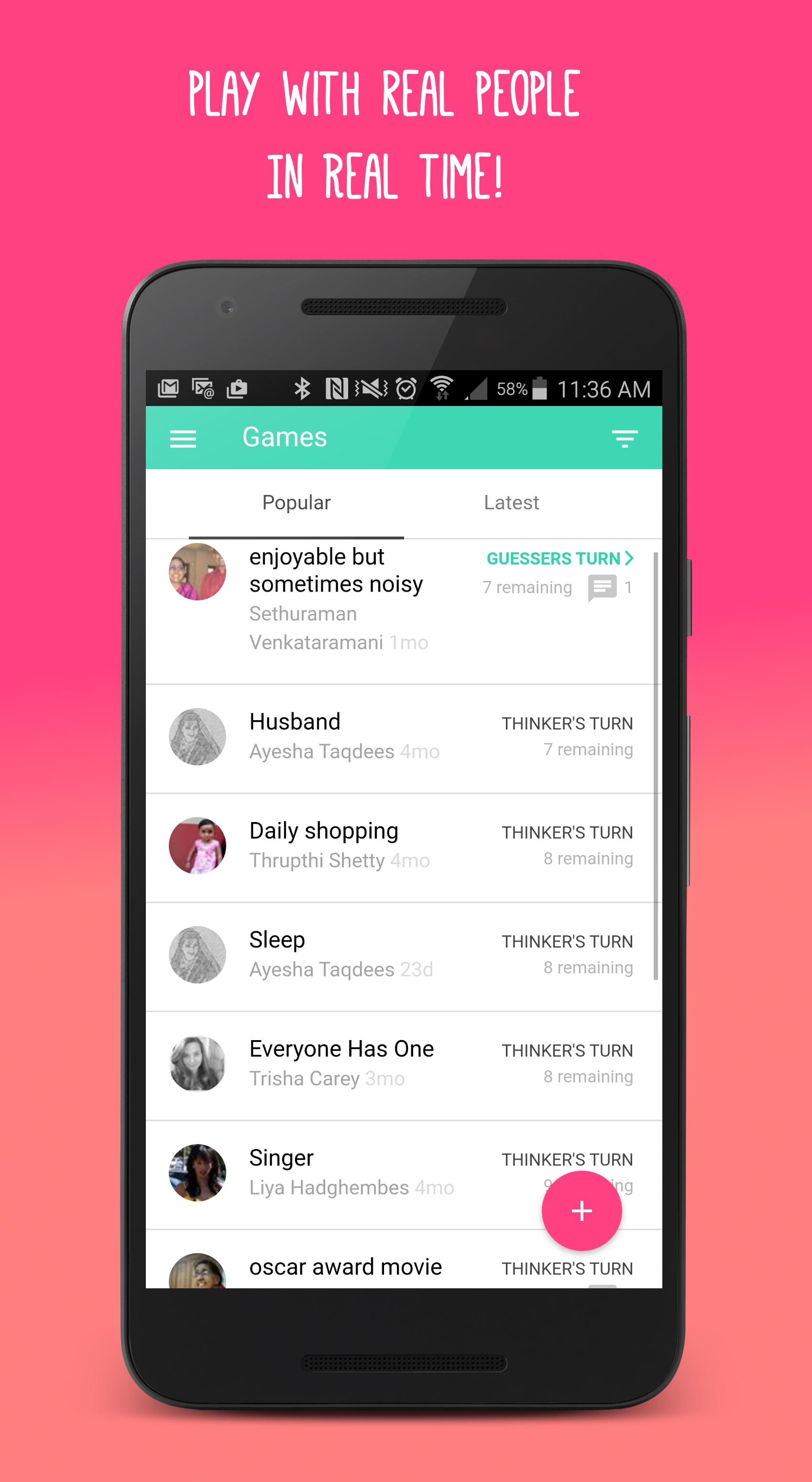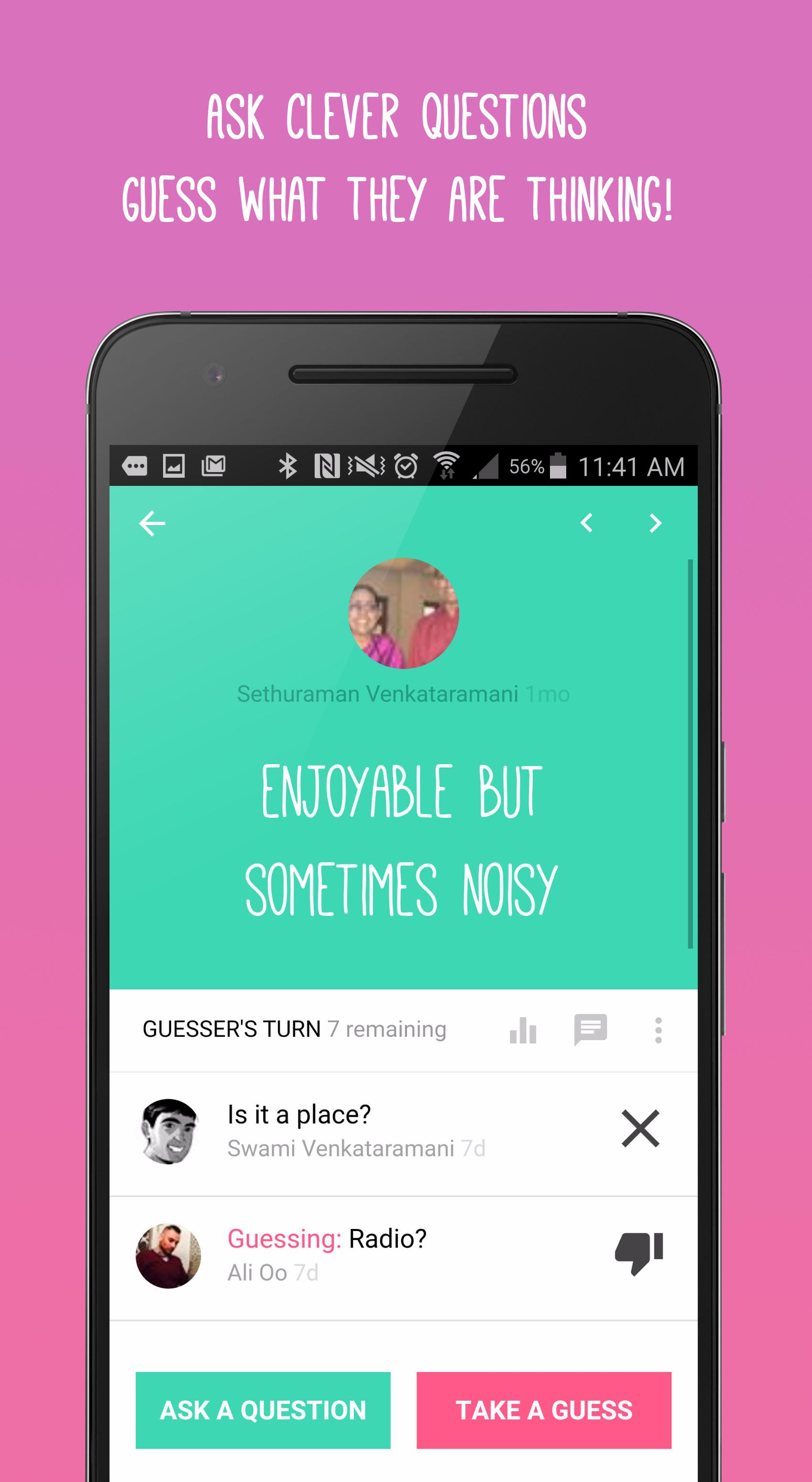 Games have a powerful way of bringing family and friends together. Forty years ago this meant families joining together at game night to play Risk or Monopoly. In recent years, Words with Friends, Draw Something, Trivia Crack and others have created opportunities for bonding with friends and family. With 20 Questions, we have taken the world’s most widely recognized guessing game, and adapted it for play on the social platform. There have been versions of this game where you play with the computer as your opponent, but we are the first to bring this classic guessing game to your social network, where you can play with real people, in real time.