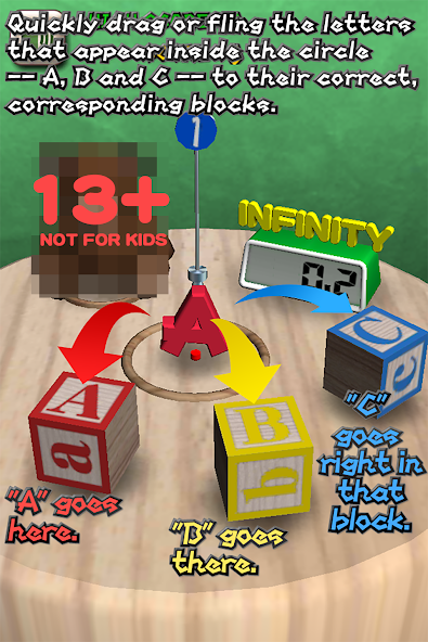 A simple yet addictive game: Quickly drag the letters that appear -- A, B and C -- to their correct, corresponding blocks.