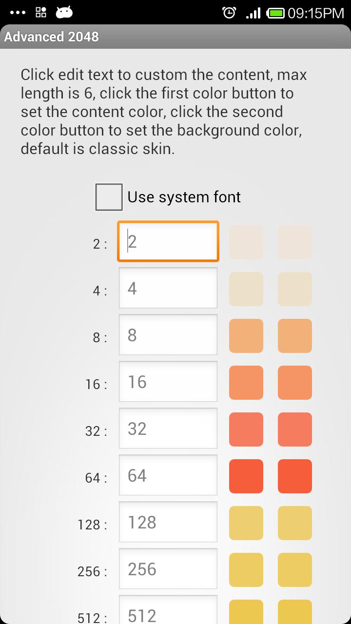 Advanced 2048 add 3x3, 5x5, 6x6, 7x7, 8x8 mode except for 4x4. default is 6x6 mode. with the senior 6x6 mode, you can get to 2048 easily, but the challenge is how high number will you get to?