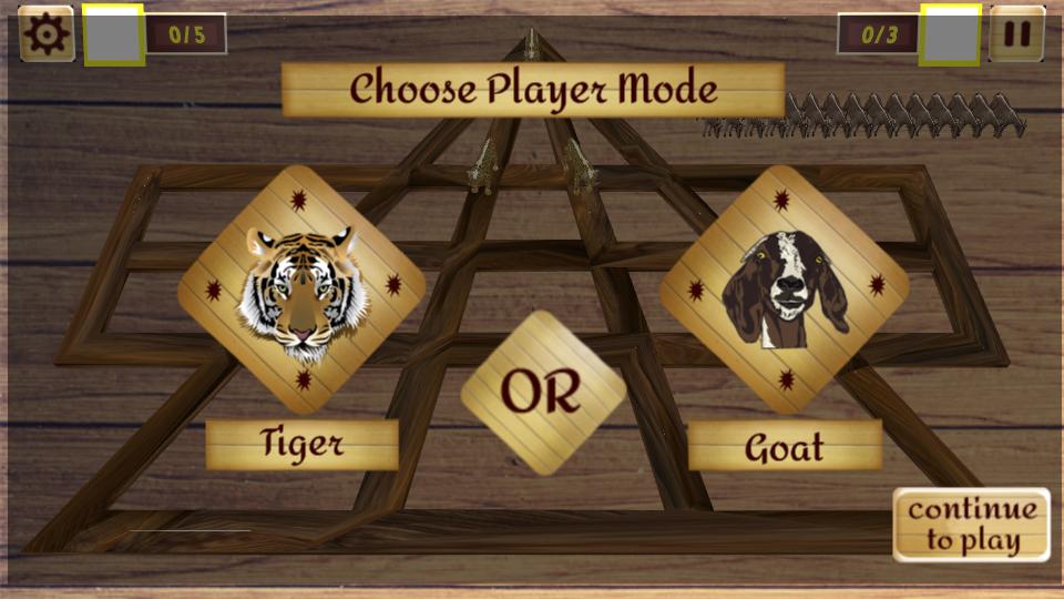 - يتم وضع النمر والماعز على لوحة ألعاب مع 23 وظيفة. يمكن لكل لاعب نقل القطع على طول الخطوط التي تربط مواقع اللوحة.