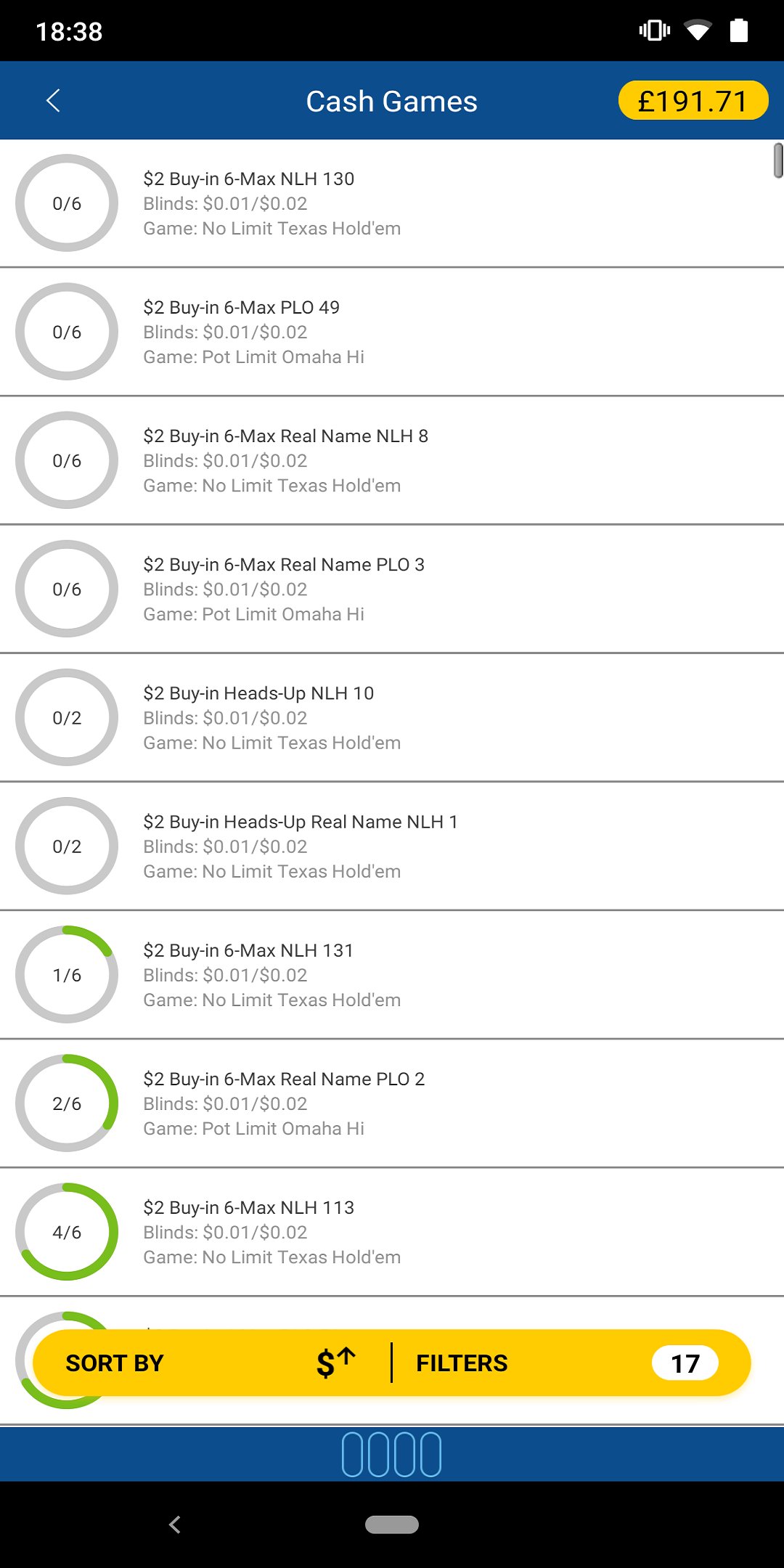 • SIT & GO'S - اختر من بين مئات طاولات Texas Hold'em التي تبدأ رسوم الاشتراك فيها من 1.10 دولار.