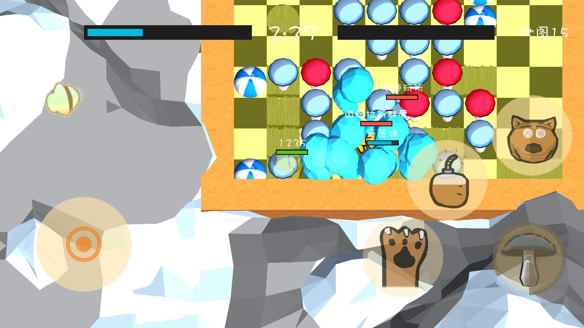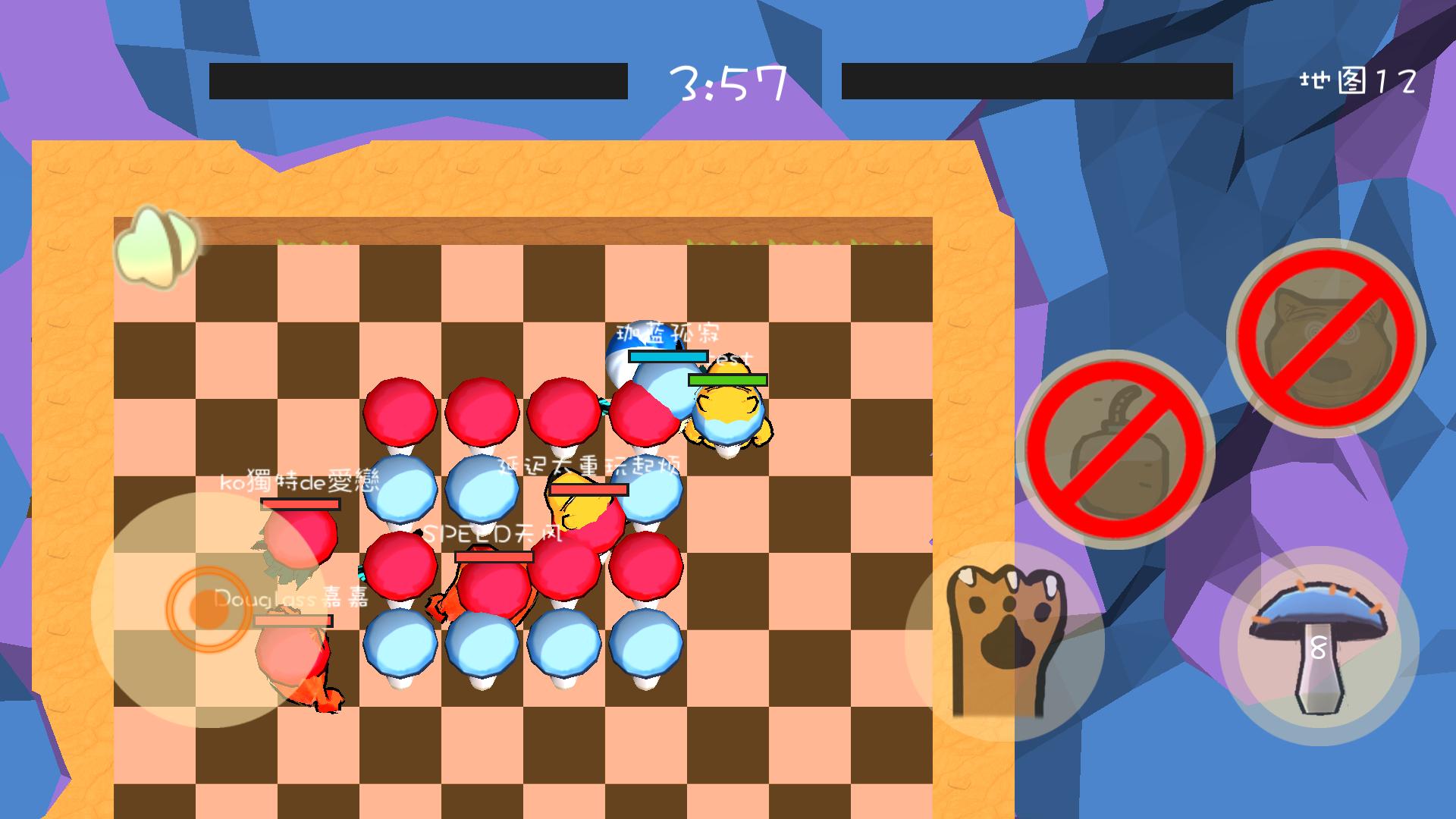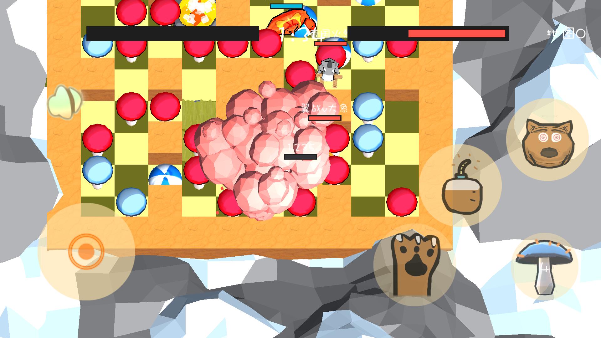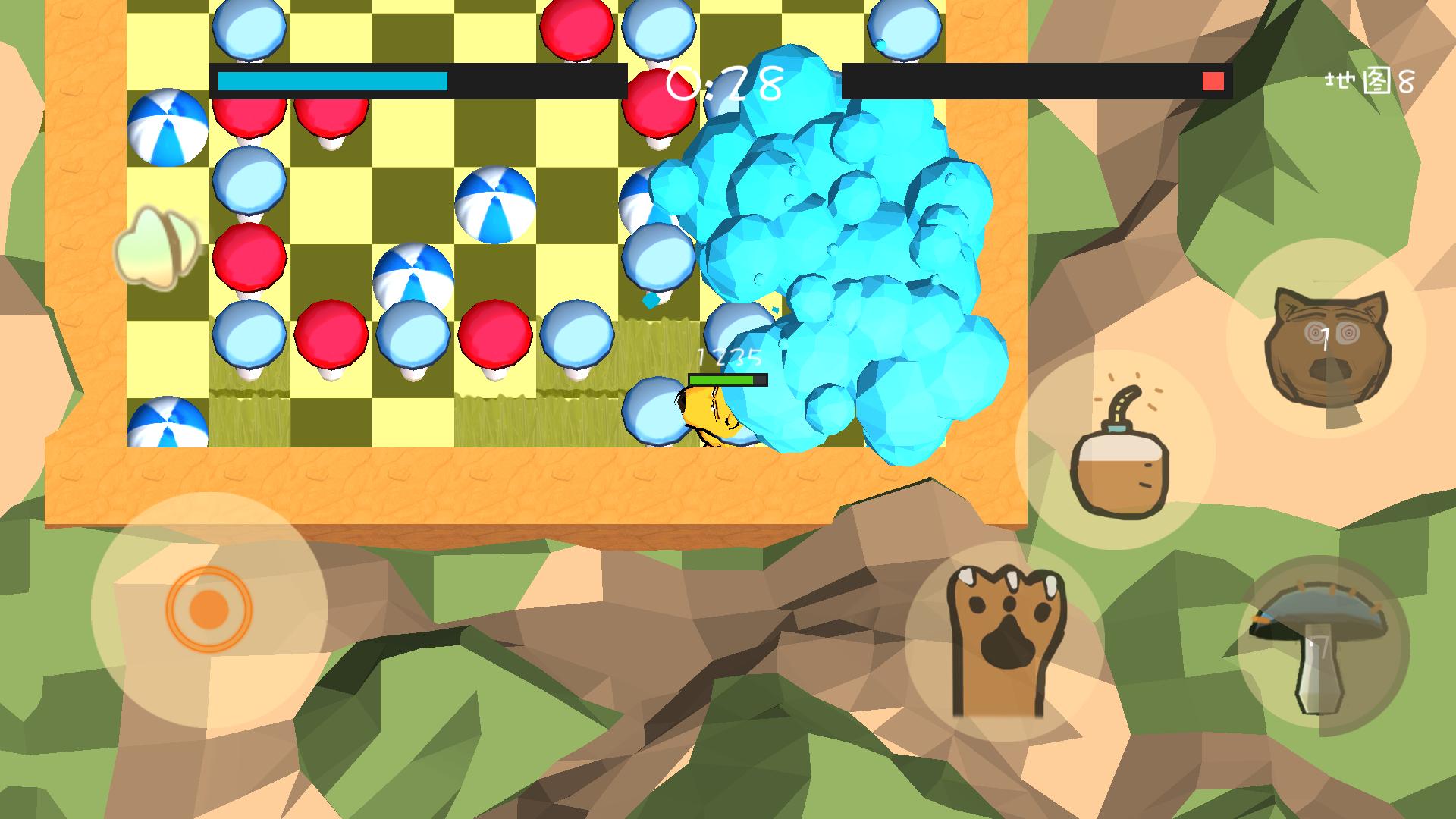 كيف تحصل على النتيجة؟ استخدم الفطر الأزرق لإحاطة الفطر الأحمر سوف تنفجر وستتحول الفطر الأحمر المنفجر إلى نقاط. (يمكنك الاستفادة من الصخور ، حافة الخريطة ، الشجرة ، الكرة)