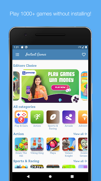 Instant Games هي محطة واحدة لجميع غرائز الألعاب الخاصة بك! ركوب جنبا إلى جنب مع 1000+ لعبة على هاتفك ، في أي وقت ، في أي مكان!