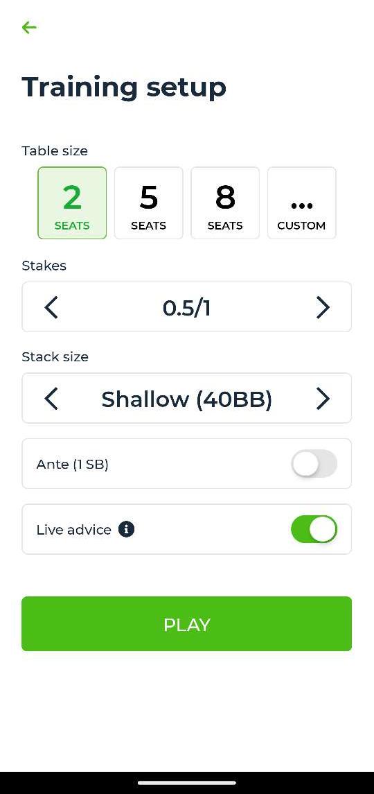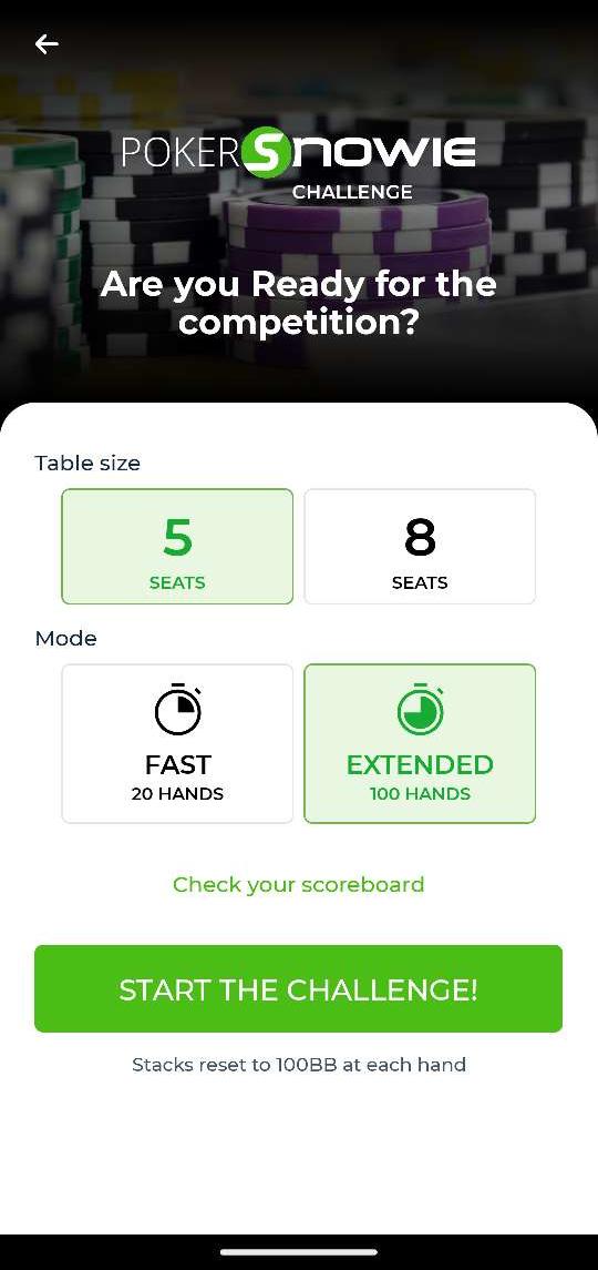 سيتيح لك التطبيق اللعب ضد PokerSnowie في التكوينات المختلفة: