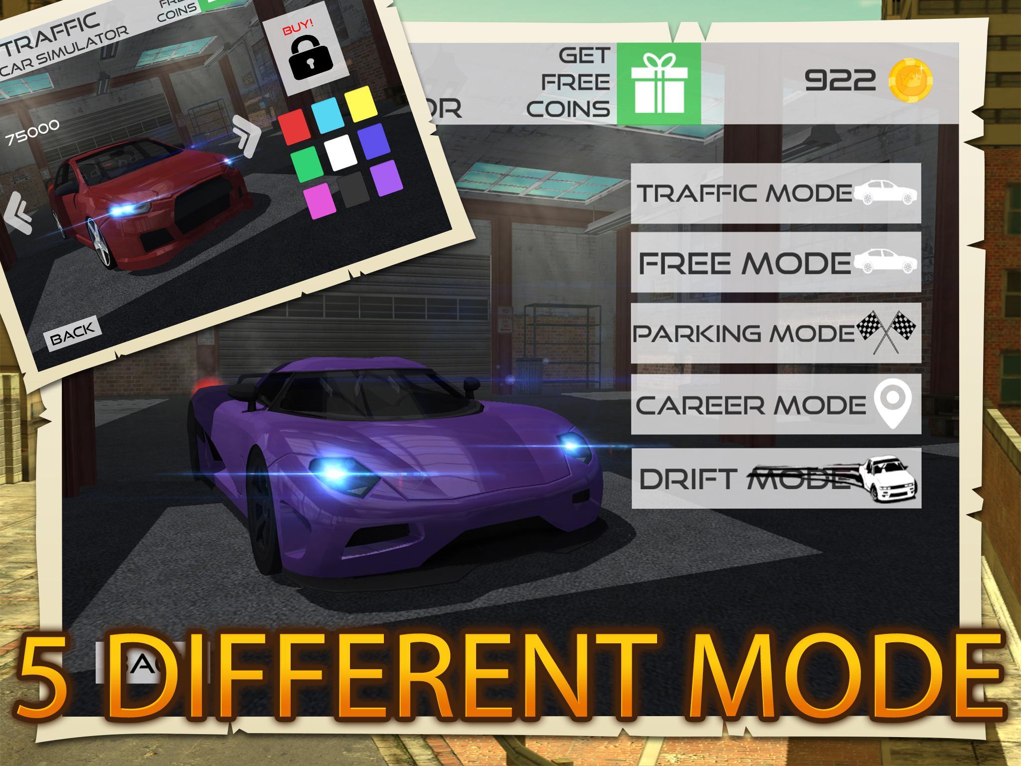 Bored of attending driving school? No driving action on your lessons? If you ever wished to try a sports car, now is your chance to drive around the city with real traffic and physics that will blow your senses. Perform illegal stunt tricks, run at full speed, test all the cars and modifications you want to add and get ready to beat other racers. We have the perfect mix of a simulator, as we added several modes for you to enjoy: traffic, drift, parking, career & free drive mode! You have the best of many games in one single app. Drive furiously on different scenarios, like city, deserts, circuits, parking lots & more. Choose your car to begin the driving simulation, choose among 3 control options; even you can use tilt control by tilting your device left or right for a better gameplay experience. Ready to smash the streets with your luxury sports car?