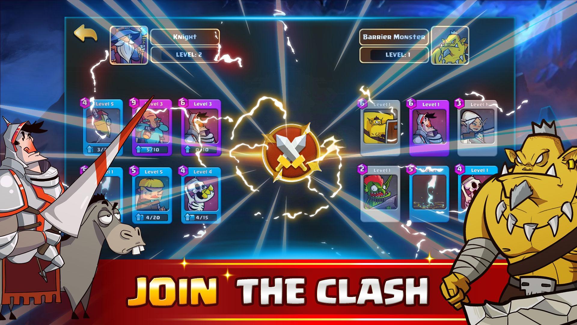 Collect powerful heroes and use your skills! Blow enemies away with a powerful tornado, or defeat them immediately with an electric strike. Additionally, you will probably receive the incredible rewards – daily bonus and the magical chest containing cards. Though the more levels of this castle crush you play, the more difficulties you may face to unlock a new card, you have more chances to win coins and gems to upgrade your heroes’ skills and strength.
