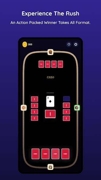 Cabo is not just a card game but also a memory game that will sharpen your mind and strategy skills. Also, Cabo is intended for entertainment purposes only. This game is for players over 18 years old. Cabo just simulates the game with virtual currency & does not reward any real money or prizes & is not involved in any real money gambling.