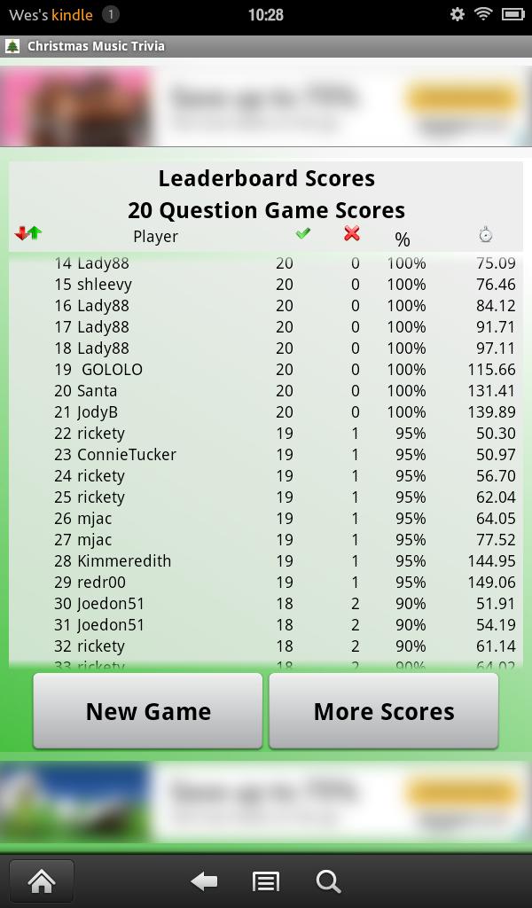 Christmas Music Trivia quiz game on the artists & lyrics of Christmas favorites.