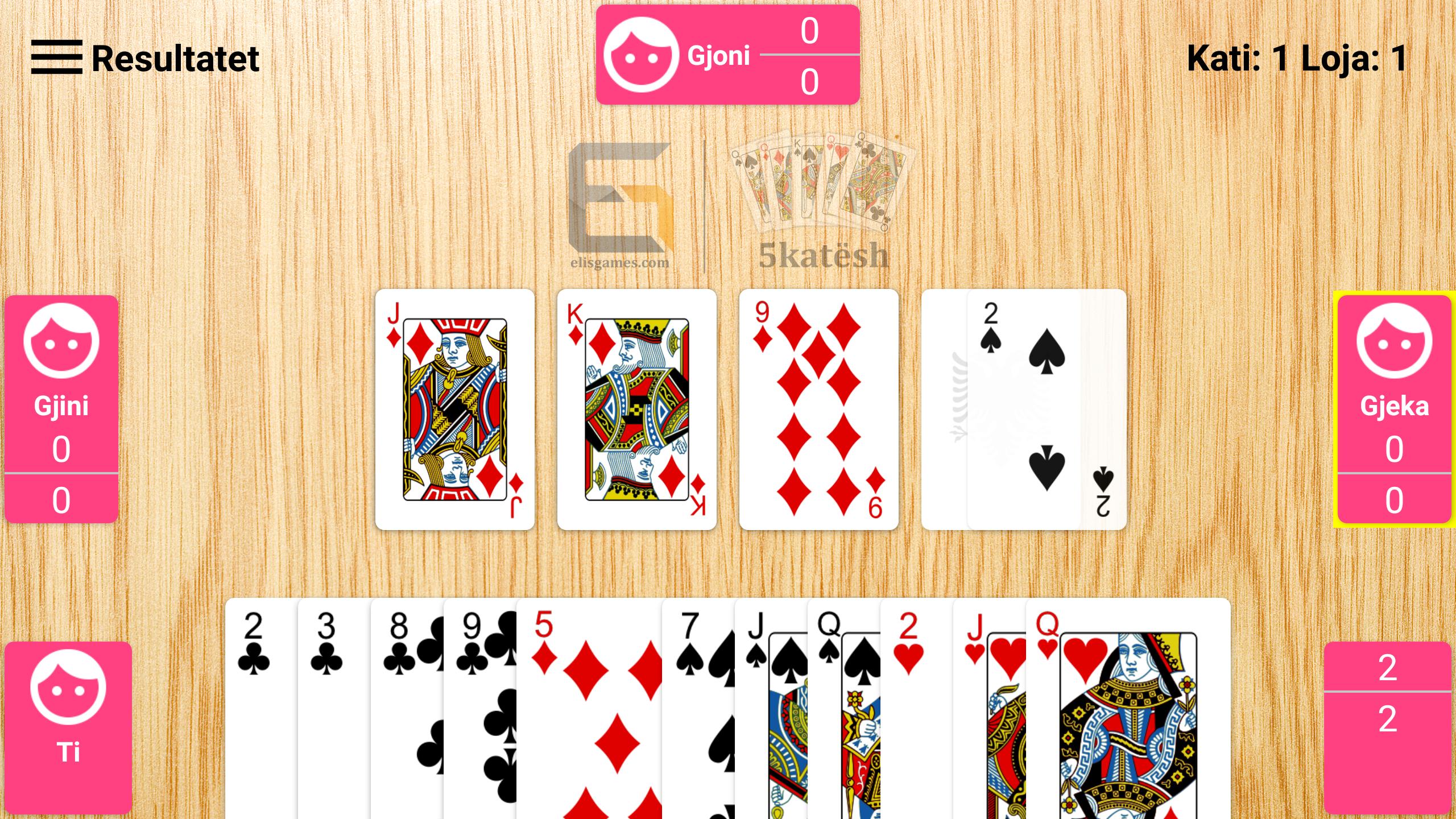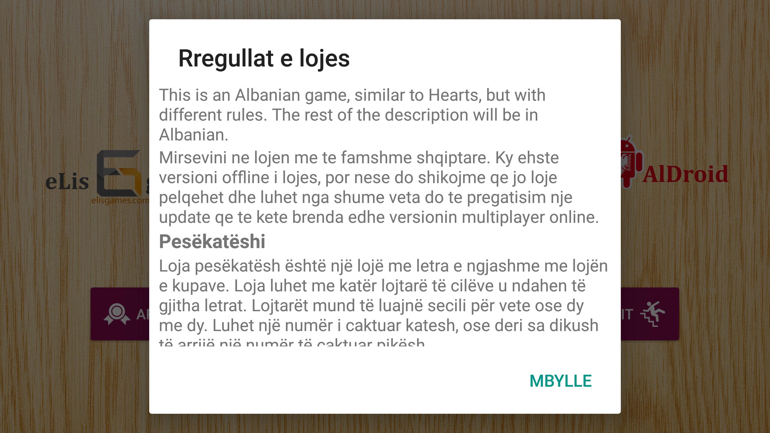 This is an Albanian game, similar to Hearts, but with different rules. The rest of the description will be in Albanian.