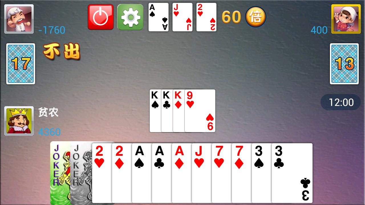 Landlords ist ein beliebtes globales Pokerspiel, die Regeln sind ein Trio-Spielkarten, der Vermieter der Partei, die anderen anderen auf der anderen Seite, die beiden Seiten kämpfen gemäß der Größe der Reihenfolge der Kartenmarke, die erste Aus-Out-Karte in ihren Händen Party gewinnt. Bezeichnung als Punktzahl: Wählen Sie zufällig einen Spieler in dieser Reihenfolge mit dem Namen "Punkte", die Spieler können "1 Minute", "2 Minuten", "3 Minuten" oder nicht als Punkte bezeichnen. Die Punktzahl wird aufgerufen, ein hohes Verhältnis zu sein. Genannte 3-Punkte-Spieler, um Landbesitzer zu werden. Wenn kein Spieler drei Punkte anrief, dann ein Spieler mit den höchsten Punkten und angerufen, um Landbesitzer zu werden. Wenn niemand Punkte anrief, dann neu lizenzieren, drei nannte niemand den Vermieter, die Auflösung des Spiels. Karten: Nach den Entscheidungen, Karten, die zum Vermieter der Spieler ausgestellt wurden, sind andere Spieler nicht sichtbar.