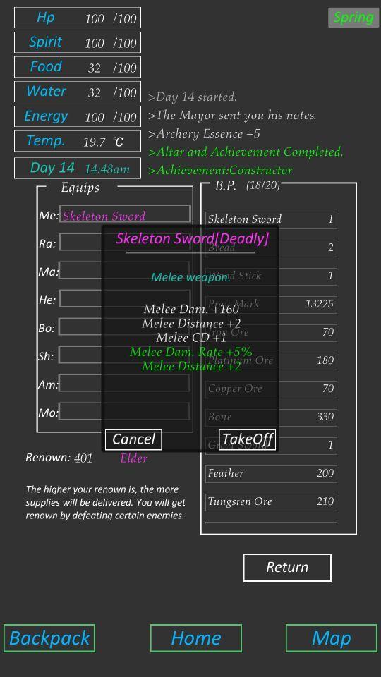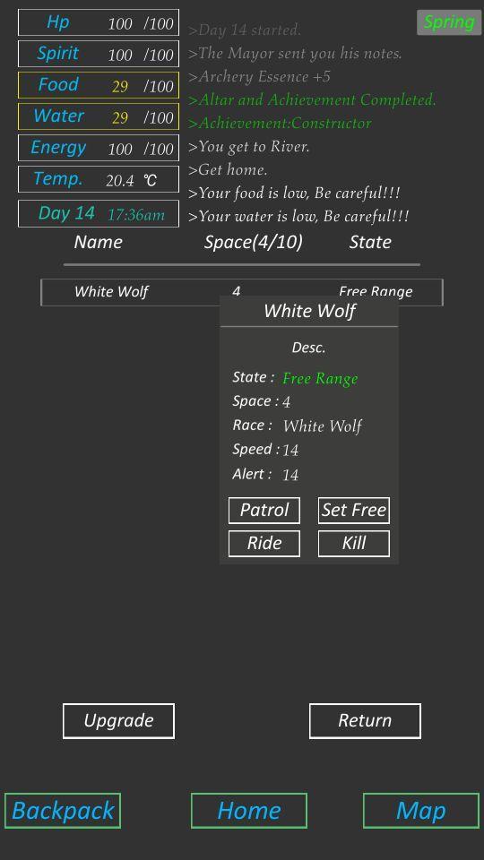 Entspannen Sie sich einfach, es ist nicht so gefährlich. Sie können auch ein Haustier wie Einhorn behalten, Wein herstellen und die Landwirtschaft genießen. Nehmen Sie sich Zeit.