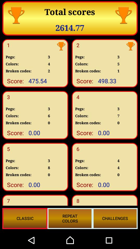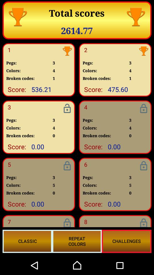 Sie gewinnen das Spiel, wenn Sie es schaffen, alle Farben in der Codesequenz zu erraten und wenn sie alle in der richtigen Position sind.