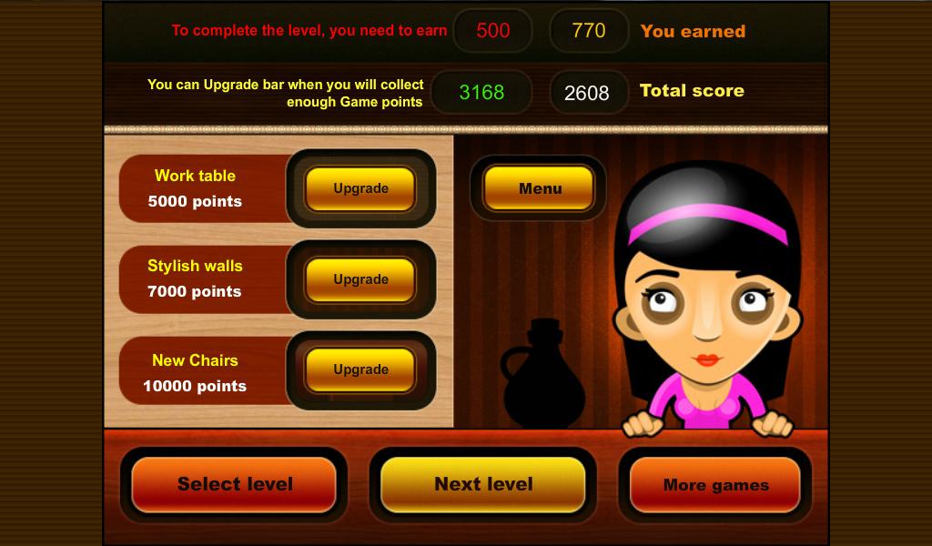 Servieren Sie den Kunden ihren gewünschten Pfannkuchen und Flip, backen Sie sie und rösten Sie sie in verschiedene Geschmacksrichtungen, Stile und Dekorationen! Bereiten Sie die Bestellungen schnell und genau vor, um Ihre täglichen Zielverkäufe zu erreichen. Überprüfen Sie das Rezeptbuch, wenn Sie sich nicht sicher sind, wie Sie ein Gericht herstellen und Ihre Vorräte im Auge behalten können!