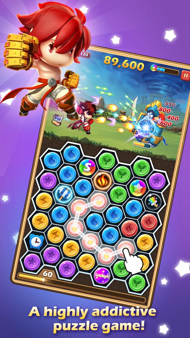 - Zeichnen Sie Linien, um 3 oder mehr verbundene Blöcke derselben Farbe zu verbinden, die explodieren und die Monster beschädigen