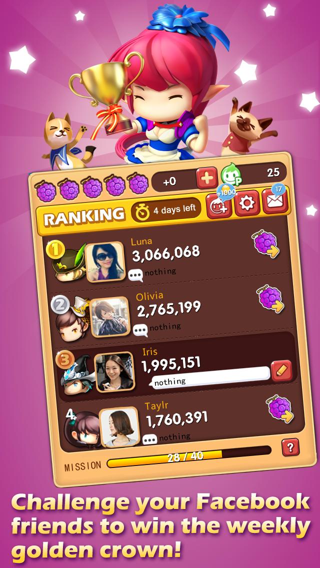 - Spielen Sie jederzeit mit Ihren Facebook -Freunden und fordern Sie sie auf, die wöchentliche Golden Crown zu gewinnen