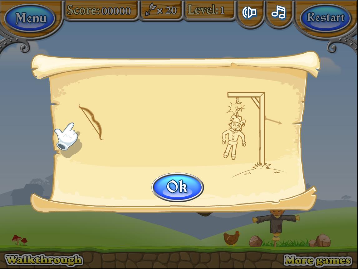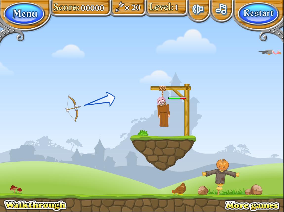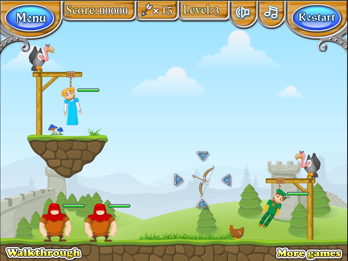 Um die armen Opfer auf einem Gibbets durch Ihre Pfeile zu retten und die Welt zu retten.
