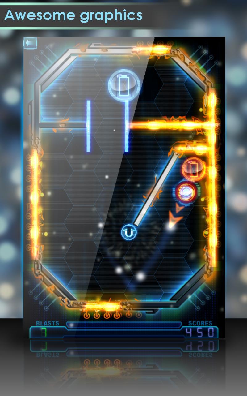 Control the sphere which takes energy from orange batteries and takes it to blue once. Move your finger on the screen to aim. Releasing your finger creates a blast wave which pushes the energy sphere in specified direction. Try. It’s really simple!