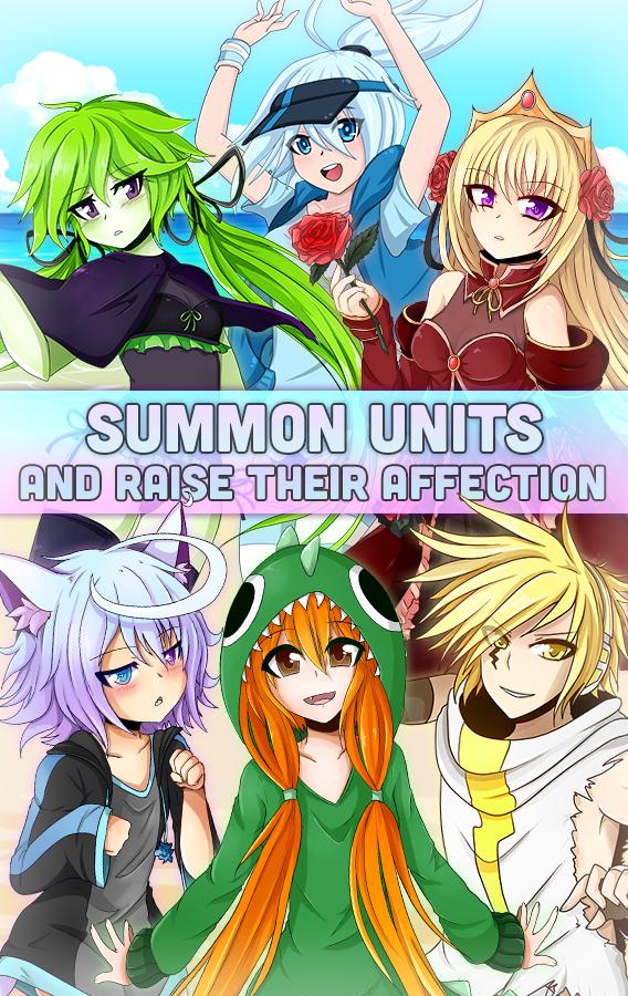 ¡Vístete y personalice tus unidades con los mejores bikinis y trajes de baño! ¡Entrena a tus personajes para aumentar su nivel, ataque y HP! ¡Visite el complejo para un tiempo individual con sus personajes para aumentar su nivel de afecto y hacerlos más fuertes!