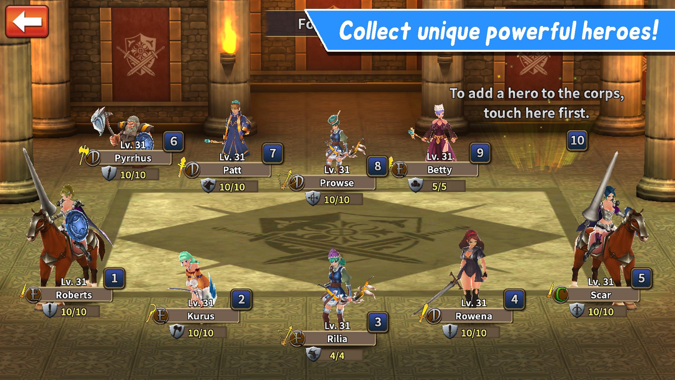 - Los héroes tienen habilidades únicas, así que coloca a tus héroes estratégicamente para la batalla