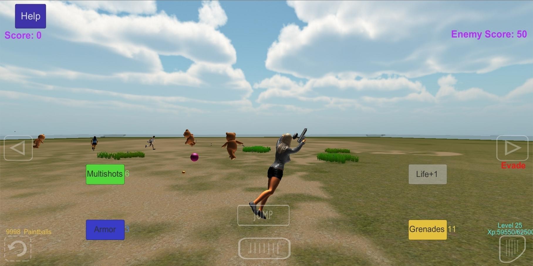 Paintball 3D Arena es un juego 3D de paintball con múltiples modos (Deathmatch, Survivor, versus) en diferentes arenas y usa Tilt to girar. Tienes que esquivar las bolas de pintura lanzadas por los paintballers enemigos.