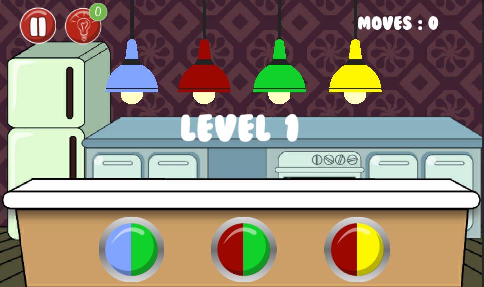 Invita a los jugadores a encender las luces presionando el botón del interruptor donde cada botón tiene una combinación de diferentes colores para que los jugadores tengan que analizarlo para borrar el nivel con el número mínimo de movimientos lo más rápido posible.