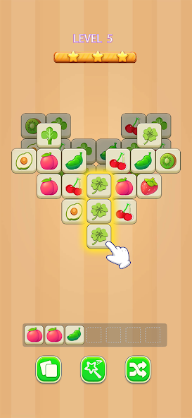 • Toque los mosaicos, recolecte tres mismos mosaicos para expulsarlos a todos. Por ejemplo, ¿tres fresas?+?+?. Cuando se recolectan todas las baldosas, ¡ganas!
