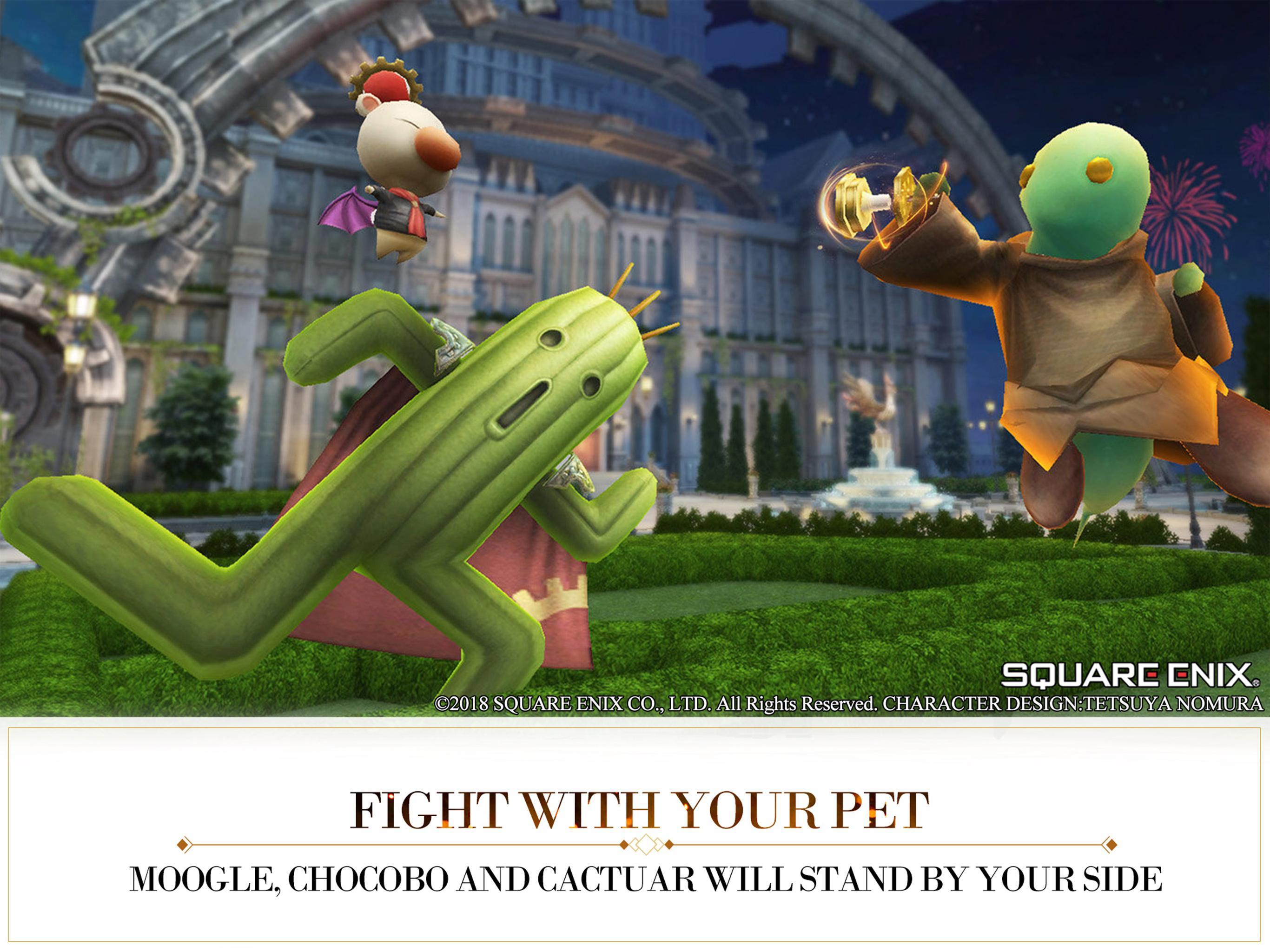 -Classic Final Fantasy gameplay mixed with brand new ones: Explore the world map in the World Adventure Mode, team-up with others in multiplayer dungeons, challenge players in the Arena, test your endurance in the Infinite Trials mode and go full out in 9 vs 9 Throne Paragons mode.