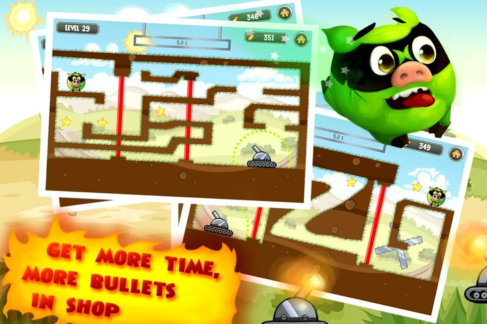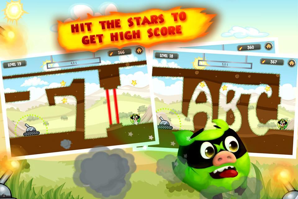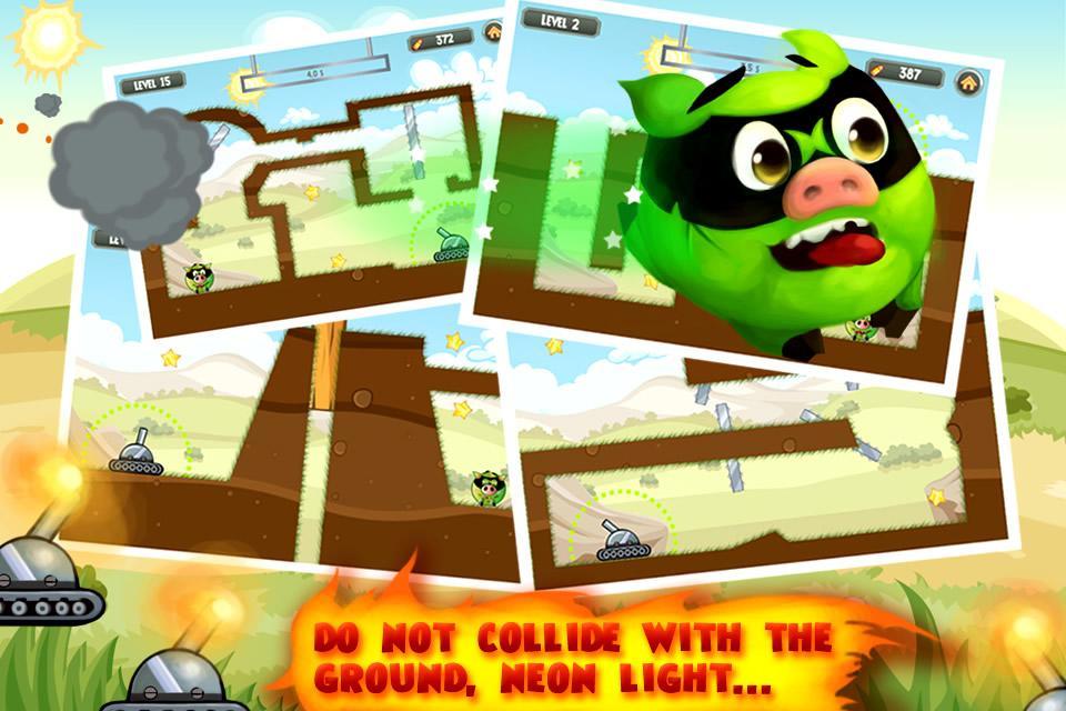 Fire Piggy – Touch inside the green circle to spawn a new bullet to fire the poor piggy. Please be very careful in some advanced levels. Do not collide with the ground, wall, board, gear and neon light. Good luck!