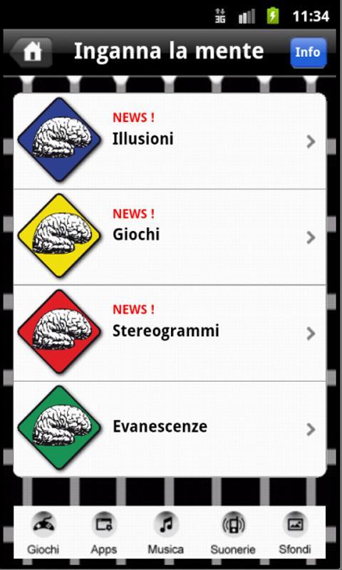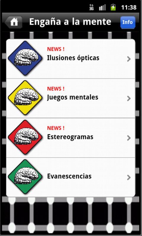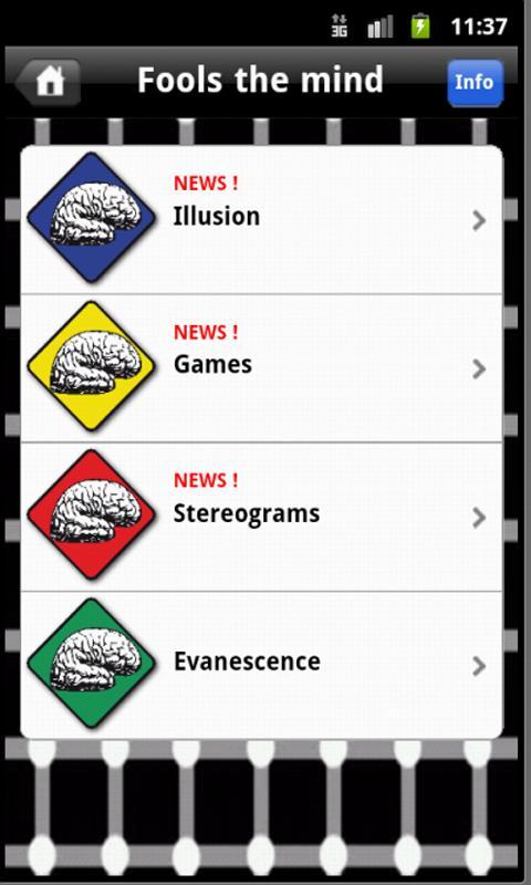 Fools the mind is an application that brings together the best optical illusions, the mind games that bring into contrast the left and right sides of the brain, stereograms and geometric evanescences.