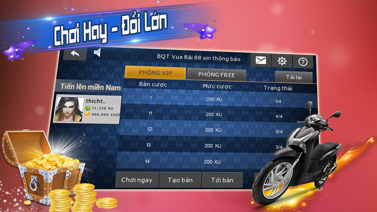 - De nombreux défis attendent des joueurs, en plus des récompenses très attrayantes en attendant les chansons ou les chansons avec des jeux folkloriques pour allumer le jeu: Mau Binh, Ba Cay, Xoc Dia, Tien Len Mien Nam, Phom, Poker, Xi à ... et de nombreux autres jeux attrayants.