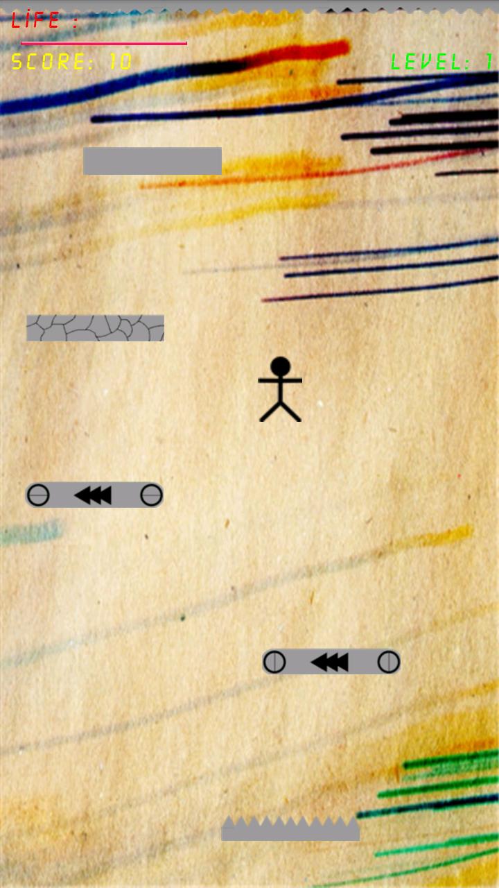 Lorsque le jeu commence, vous pouvez contrôler un petit homme noir pour tomber dans l'escalier. Soyez prudent, ne marchez pas sur l'ongle et ne touchez pas l'ongle supérieur.