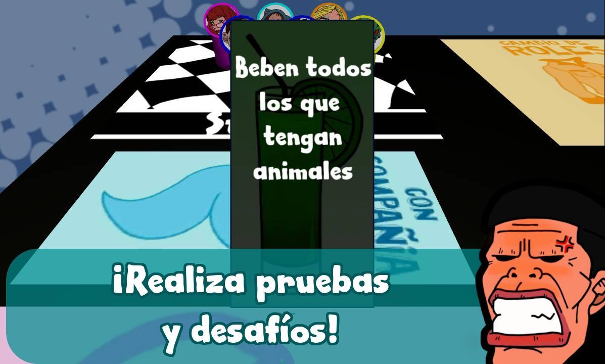 Jeu de fête et buvez aux fêtes de vos amis. Effectuer des preuves et des défis et être le premier à atteindre l'objectif de ce jeu de société connu comme Ocalimocho ou Oralimotxo.