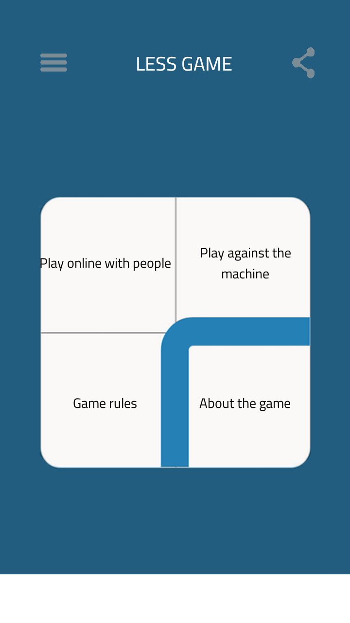 LESS est un nouveau jeu de société de stratégie simple pour deux joueurs. C'est un jeu simple dont les règles peuvent être apprises en LESS d'une minute. Le but est de déplacer vos quatre pièces vers le coin de départ de l'adversaire avant qu'il ne les déplace vers le vôtre.