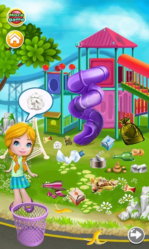 Salut, nous savons tous qu'il est très important de vivre dans un environnement propre, l'oxygène est nécessaire à la vie. Nous devrions aider à avoir l'air propre. Si nous vivons dans un environnement propre, nous sommes en bonne santé et heureux. Depuis que nous étions petits, nos parents nous apprennent que nous devons prendre les ordures uniquement dans des paniers spécialement désignés. Les parcs sont magnifiques, les enfants jouent et profitent de l'air frais. Dans ce jeu pour enfants, vous aurez l'occasion d'aider à nettoyer un parc qui est près de notre maison. Chaque jour, nous y allons, mais aujourd'hui, nous sommes arrivés, nous avons trouvé que c'était très sale, des gens jetant des ordures partout et maintenant nous devons aller pour nettoyer. Ce jeu vous fera vous sentir important parce que vous ferez quelque chose de bien, vous pourrez faire des sourires à ceux qui viennent au parc pour vous amuser.