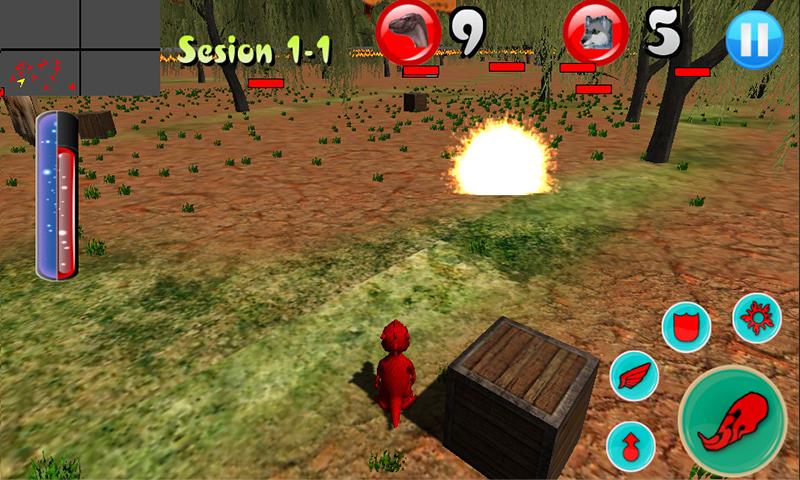 Le monde est divisé en 4 map. Les monstres se déplaceront et chercheront votre dragon dans la région. Notez l'attention à votre sang, vous perdrez une certaine quantité de sang lorsque le monstre a frappé, a 2 monstres de loup de catégorie et des dinosaures.