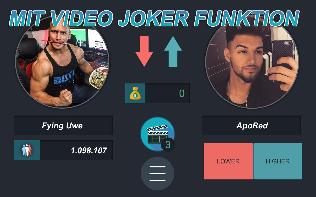 Higher and Lower Game Yt is a game by guessing which YouTuber has more or less subscribers. Simply click on Higher Or Lower to see if you are right. This quiz game is completely free for you and in German, without annoying advertising that takes you fun. Decide for yourself whether you want to watch advertising or not.
