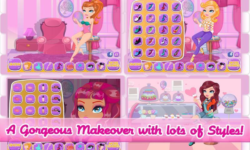Makeover: In the last mini game you will dress up the girls so they will look incredible while eating a cupcake in the bakery. Choose stylish hairstyles and put on the most colorful makeup (lipstick, eyeshadow, mascara and more). The most fabulous dresses, shorts, and shirts are in the clothes and of course a cool legging or panty with print. In this makeover we did not forget about all the cool accessories you can use to finish the look of. There are so many accessories like bags and jewelry (necklaces and earrings). Put on a gorgeous pump, sneaker, ballet flats or one of the other shoes. After the makeover the girls will look absolutely gorgeous!