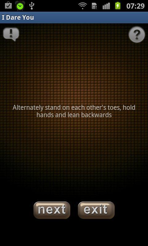Having a hard time interacting with other people? Not anymore! I Dare You is a fun application that's made for 2-4 players, where players are made to do a variety of funny, zany, mundane and sometimes lewd dares to the delight and amusement of other players. A party game that is sure to be hit with your friends or with people you're only starting to meet. This is also a perfect Drinking Game