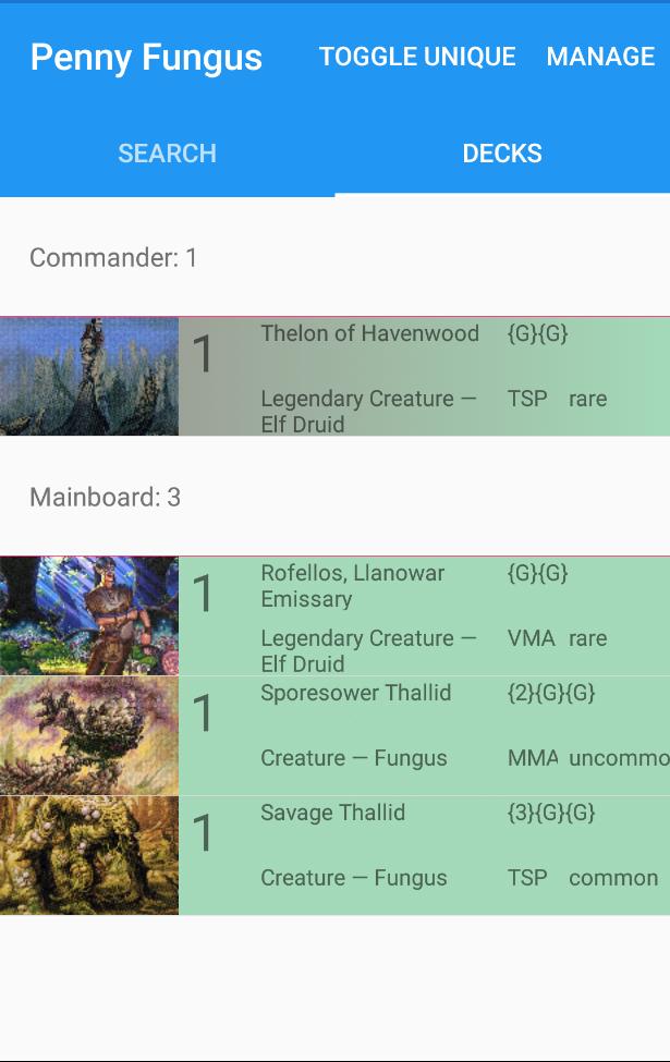 Saat Anda menambahkan kartu ke deck, Anda dapat memberi tahu aplikasi apakah kartu tersebut harus normal atau foil yang pada akhirnya akan digunakan untuk harga, penyaringan, dan penyortiran.