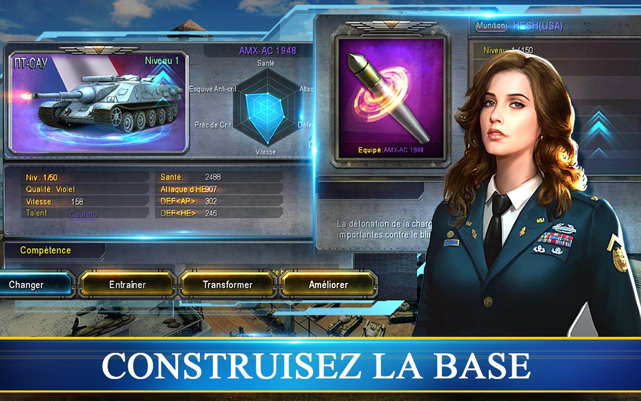 Kumpulkan lebih dari 200 tank lambang dari Perang Dunia Kedua, tingkatkan dan latih untuk membangun pasukan yang sempurna. Lefain jutaan pemain secara online dan buktikan kekuatan tank pertempuran Anda dalam pertarungan 8v8 Dantesques! Mulailah dalam perang yang akan membawa Anda ke 4 penjuru dunia, menyelesaikan misi yang menarik dan mengambil perintah pertempuran yang luar biasa. Pilih faksi Anda dan tingkatkan klasifikasi Anda. Menjadi Kepala Char yang memerintahkan pasukan lapis baja paling kuat di dunia!