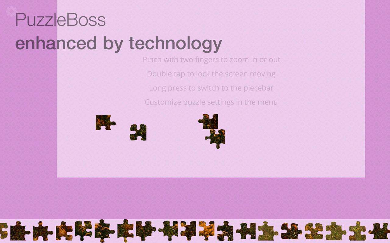 Puzzlebossは、21世紀のジグソーパン会社であり、ジグソーパズルの比類のないデジタルエクスペリエンスの作成者です。私たちは従来のジグソーパズルに忠実であり続けてきましたが、最新のテクノロジーを慎重に適用して、より楽しくしました。高度なパズル設定を通じて、パズルを調整して、箱入りのジグソーパスのように調整したり、エッジ分離、ピースバー、ピンチインアウトズーム、変更可能な背景などの機能を使用して、最新のパズルエクスペリエンスを使用できます。