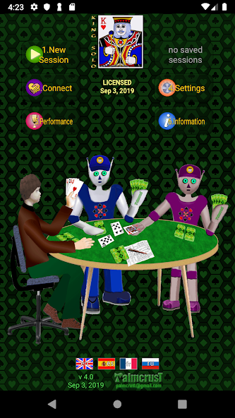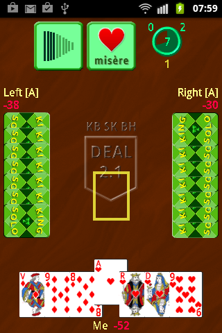 The application implements three-player version of the game with one human and two computer players. Three skills of computer player are supported.