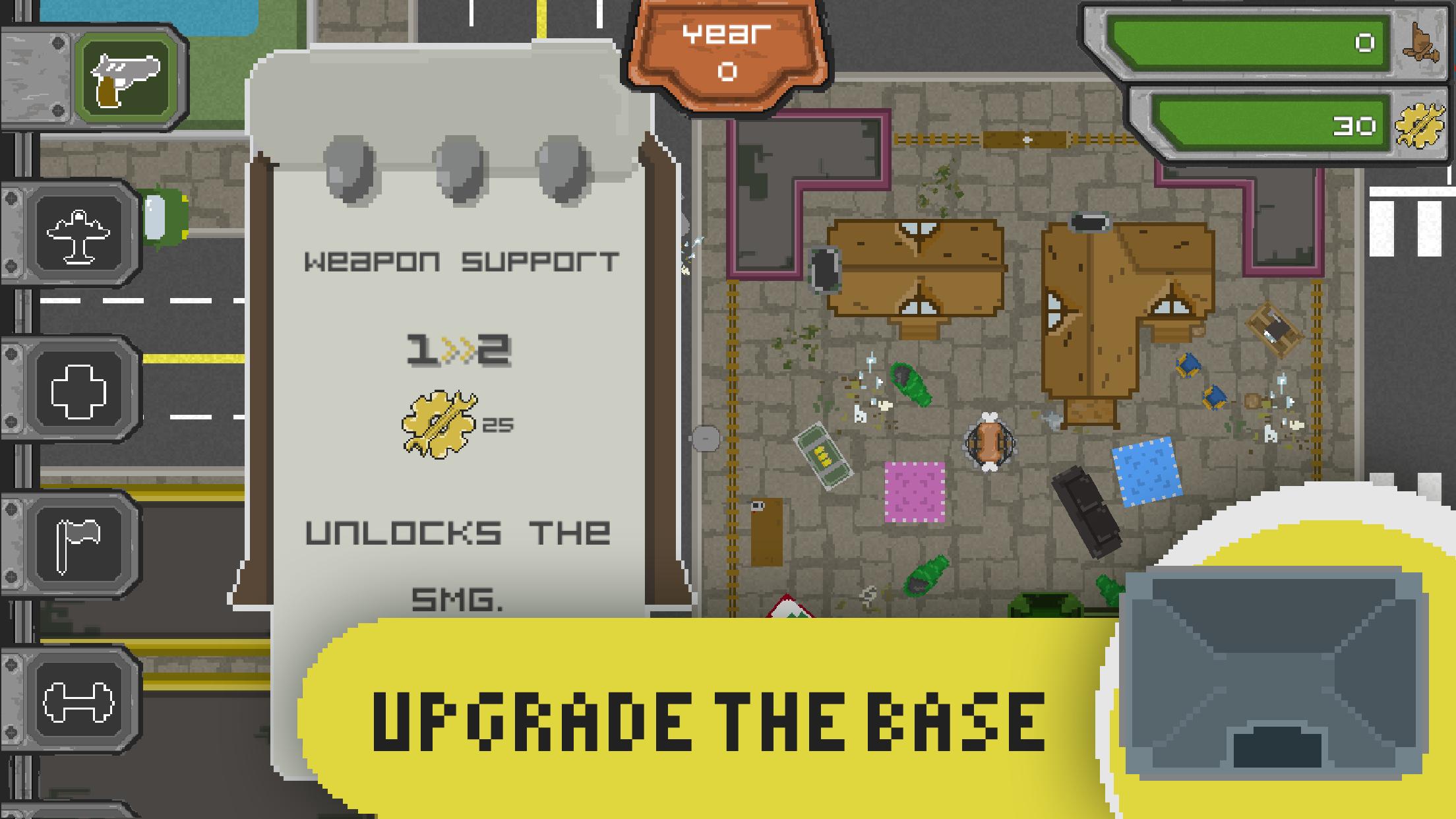 당신은 생존자 그룹의 리더입니다. 목표는 새 집을 짓는 것이지만 많은 부분이 필요합니다. 당신의 생존자들은 매일 부품과 쓰레기를 찾습니다. 그들이 살아남도록 도와주세요. 다양한 작업을 수행하여이를 수행 할 수 있습니다. 예를 들어, 폭격기를 보내서 적에 대한 치명적인 공격을 시작하십시오. 또는 생존자들에게 다양한 무기를 장비하고 부상당한 생존자에게 의료 서비스를 지원하십시오. 더 이상 도움이되지 않으면 핵 파업을 시작하십시오.