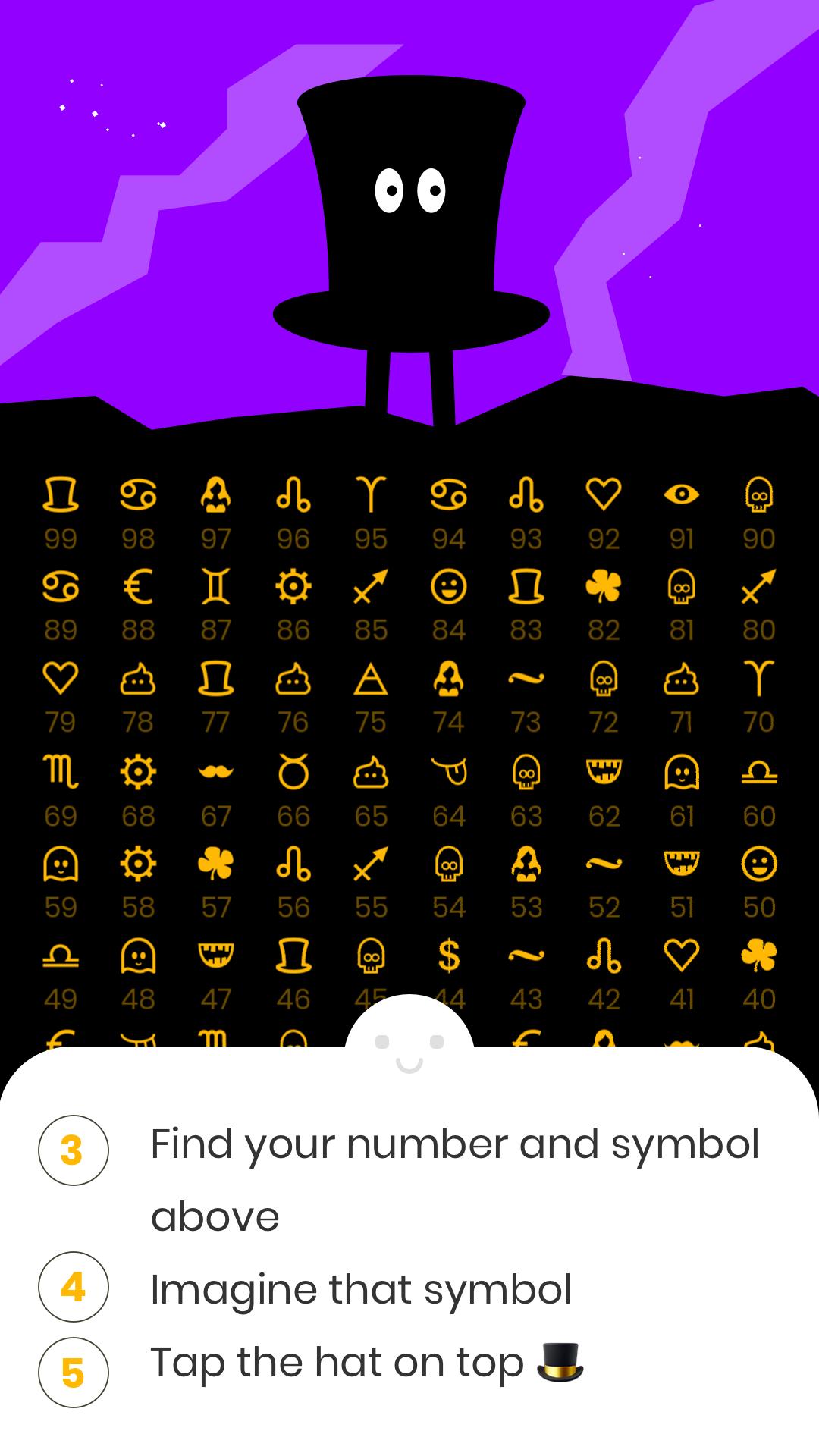 The Magic Hat will guess symbols you think about