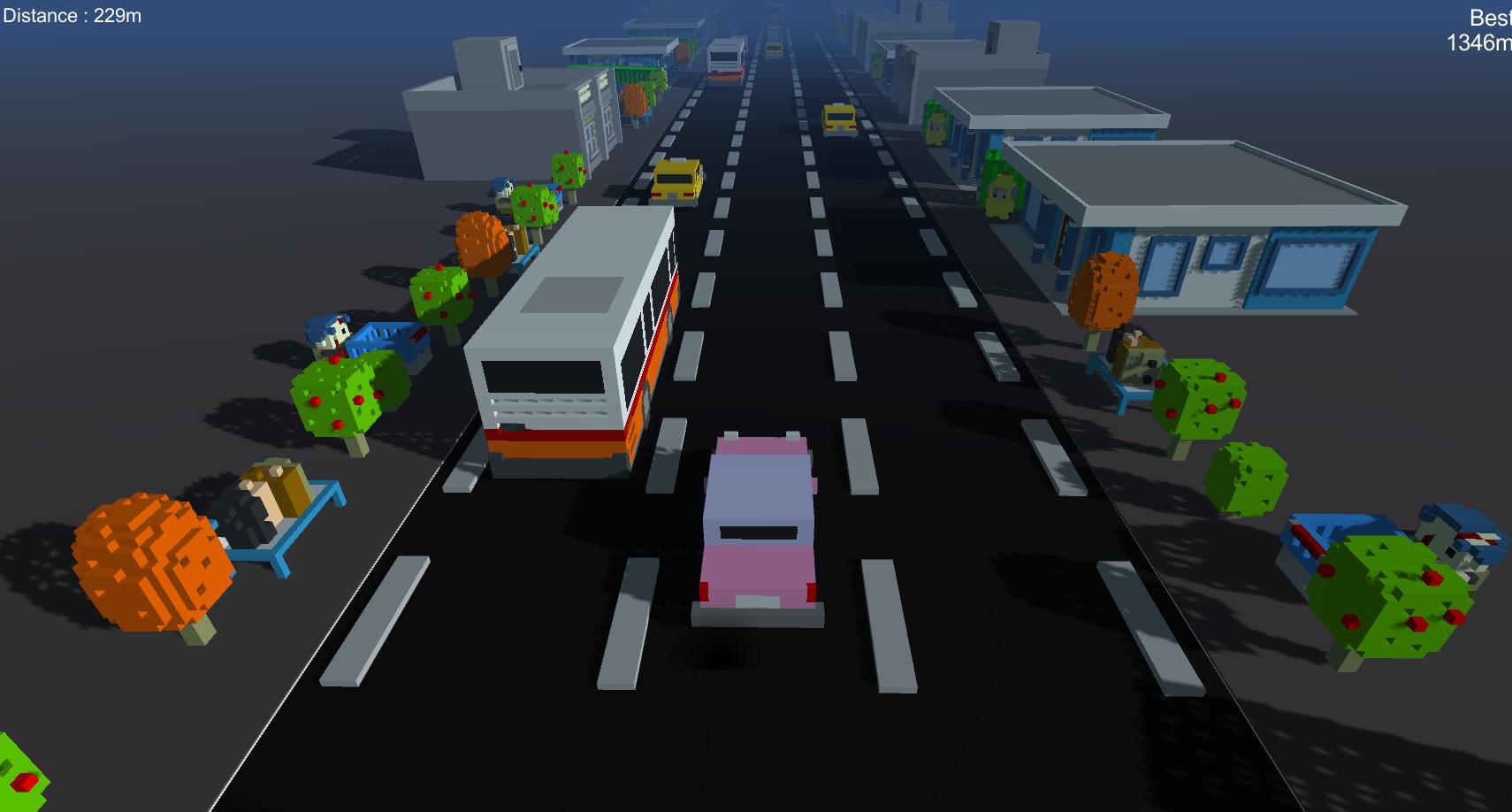 Drive a car between traffic on this endless road.
