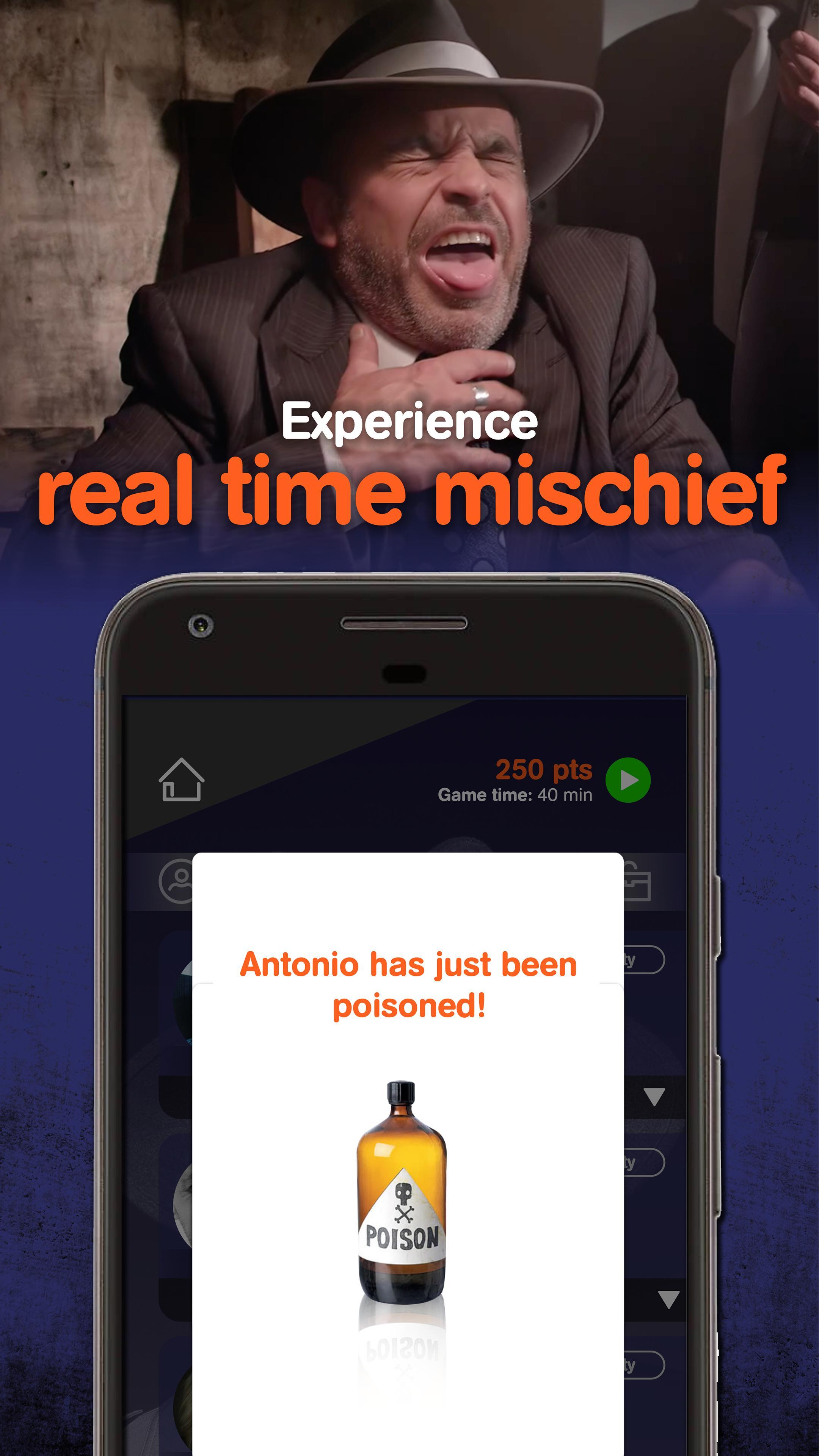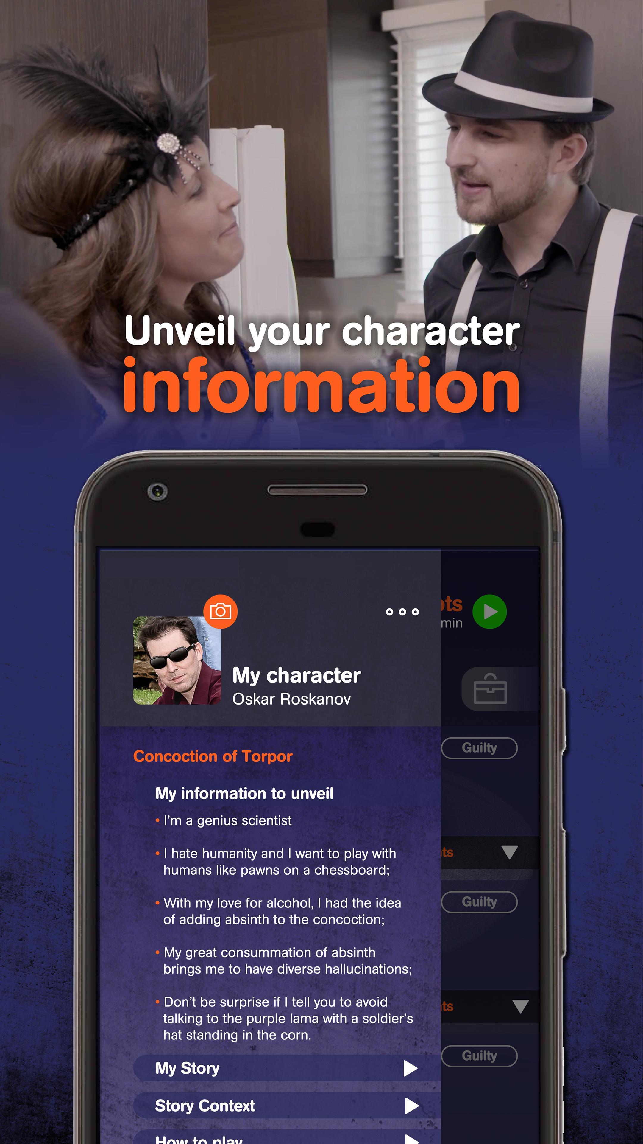 Embody your character and discovers its secrets. Experience realtime mischief! Make your own investigation by collecting information on the other participants and by analyzing clues sent by the app. Take part in surprising turn of events and be the exclusive photographer!