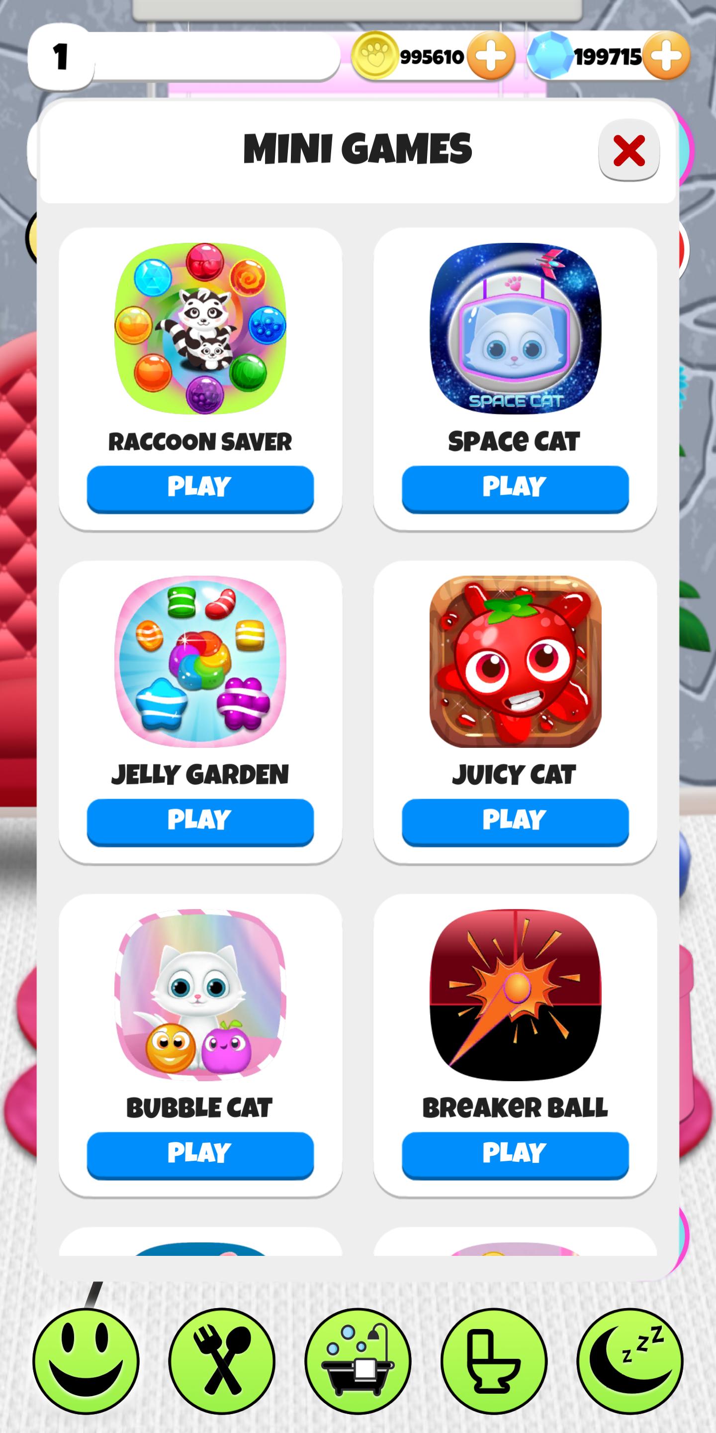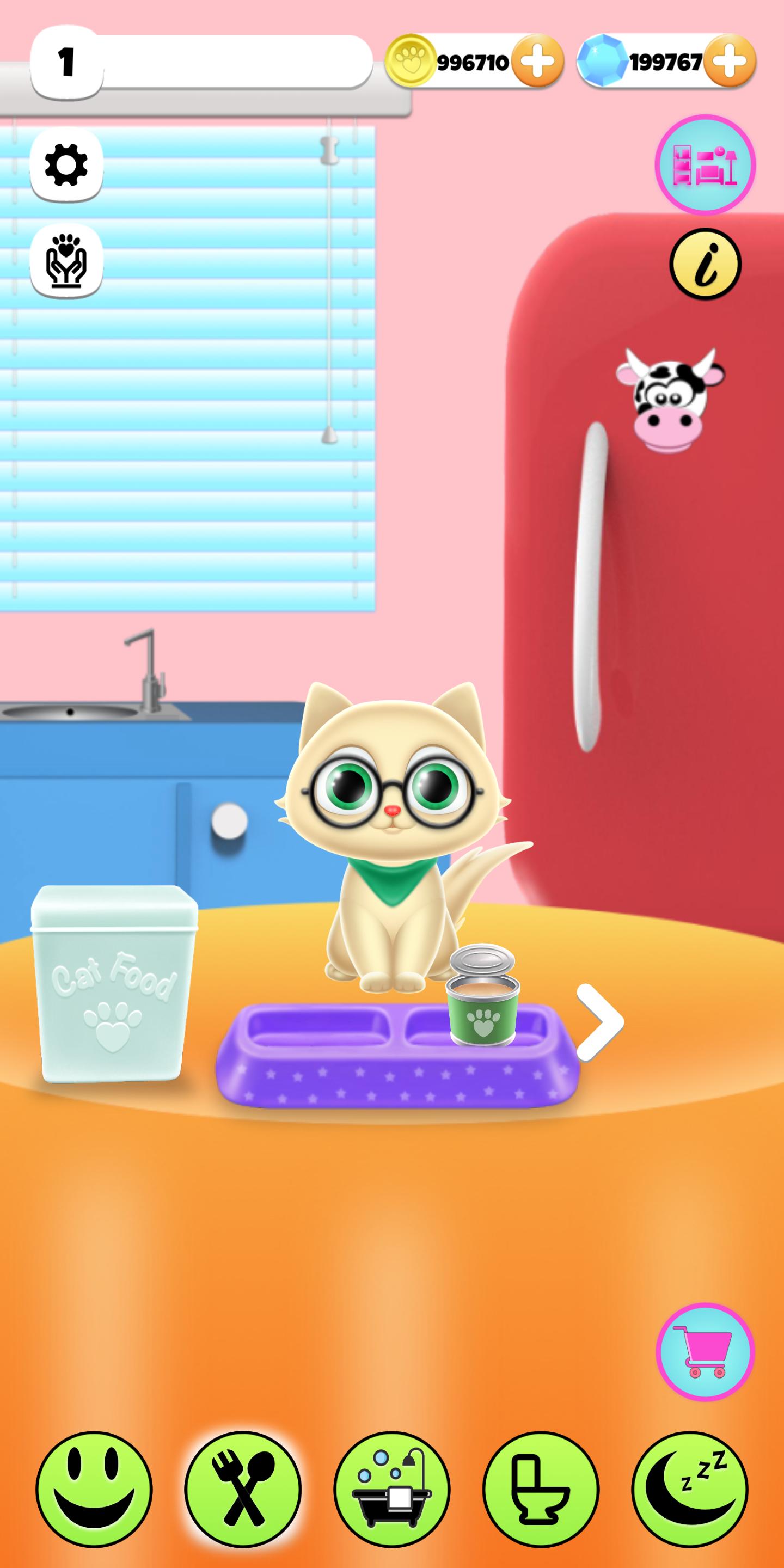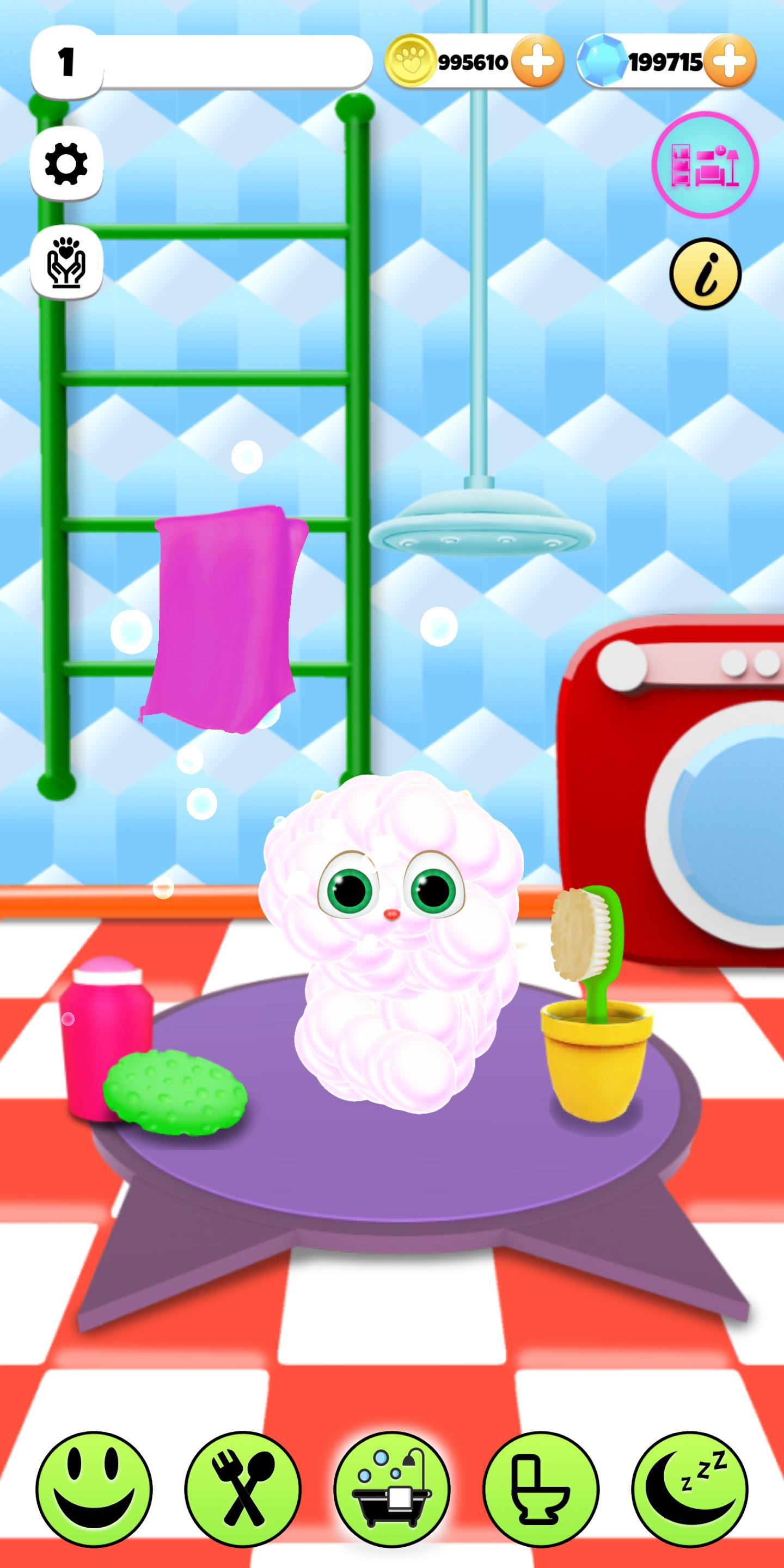 To keep your cute kitten clean and healthy in animal petting game, you can take it to the veterinary, lay it to sleep in its own bed, and give it a nice various colored bubble bath. While these responsibilities help you collect paw points and diamonds in the game, you can use the paw points in pet store to take care of all your pet friend's needs and give it gifts to make it happy. While you help it grow, you can enjoy having a very cute virtual pet and talking animal.