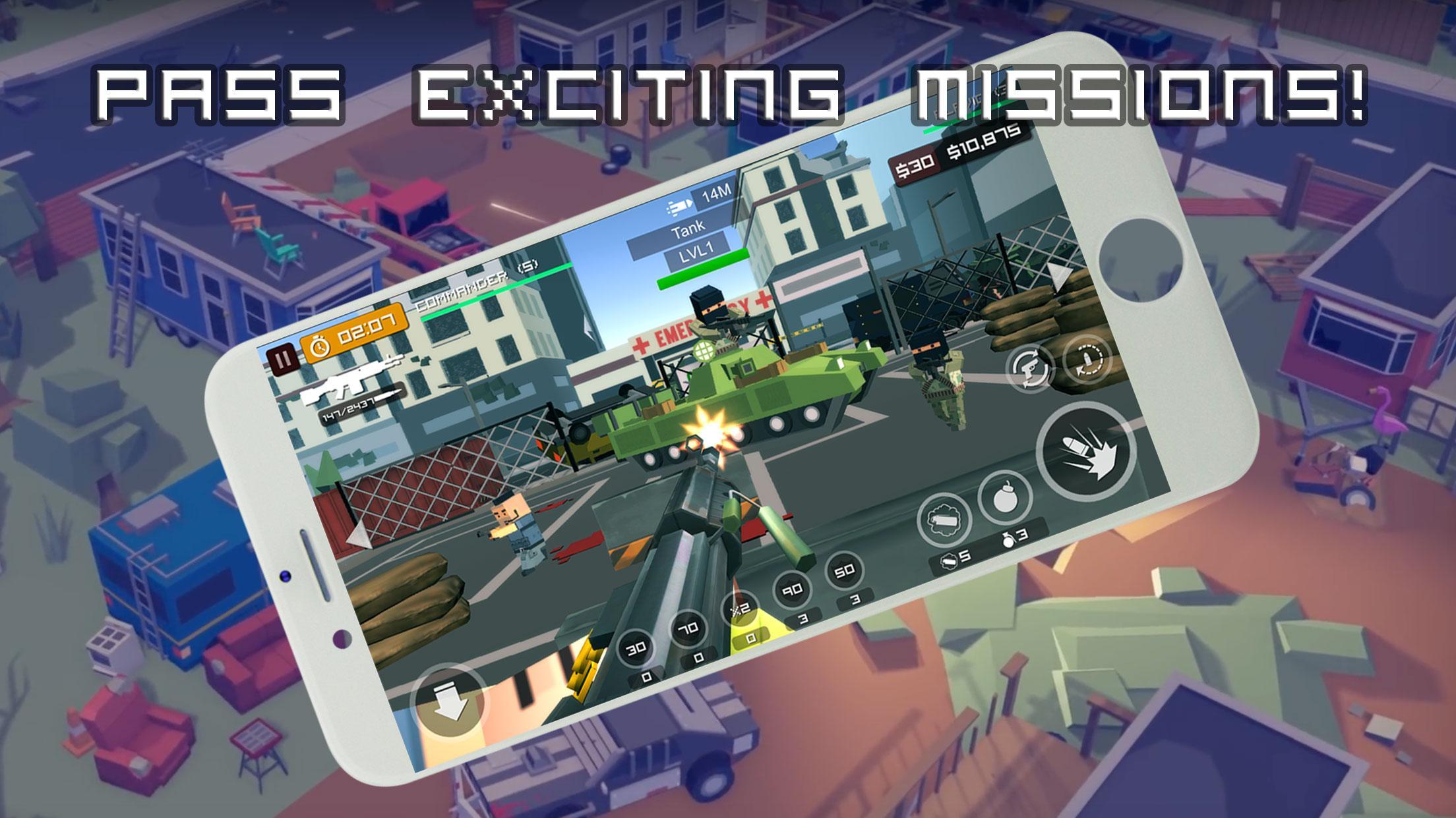 Ele construiu um exército poderoso e produziu muitas armas avançadas para esperar para se vingar e recuperar a cidade de Block. Agora, em 2050, chegou a hora da vingança. Shark lidera seu exército para bloquear a cidade e começa uma vingança. Você deve usar todas as suas armas e armas para liderar os Guardiões defendem a área da fronteira. Experimente o golpe na cidade de Pixel. Lidere seu esquadrão à vitória por 70 missões únicas em greve de blocos. Baixe e lute agora!