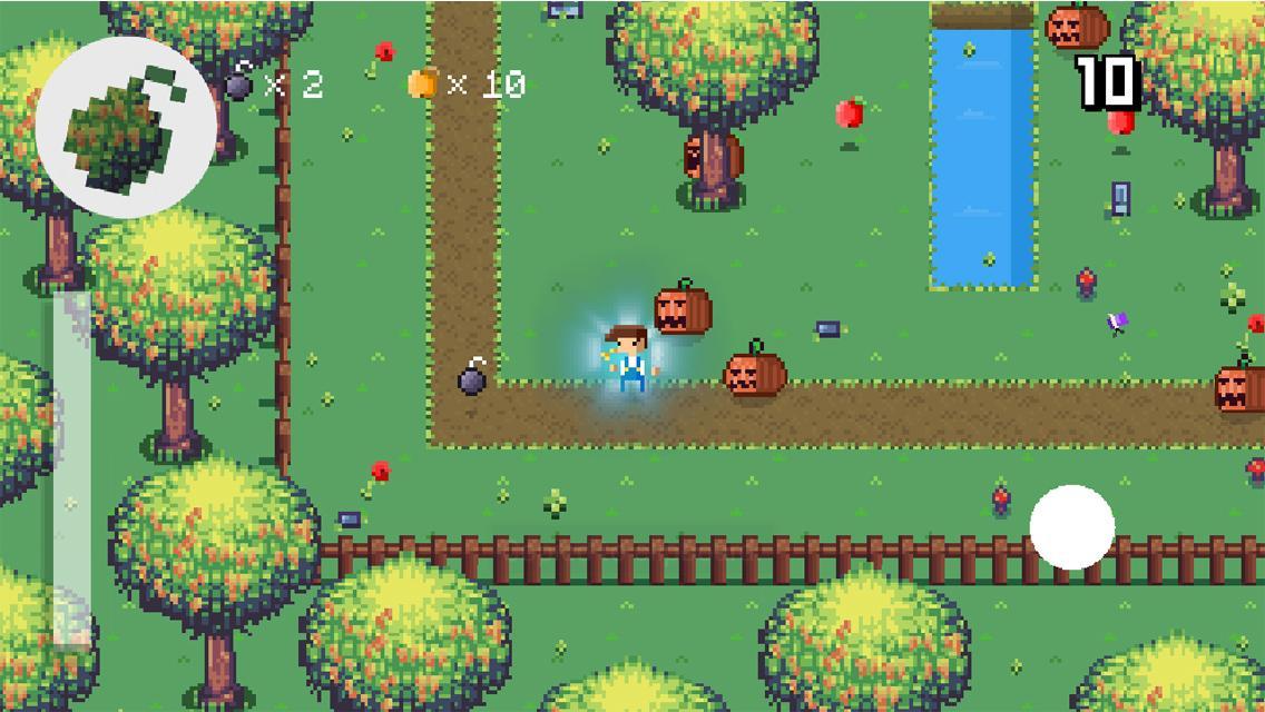 Este é um jogo de cima para baixo, no qual você o jogador (fazendeiro Al) tenta evitar o máximo de abóboras possível.