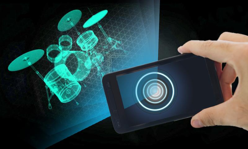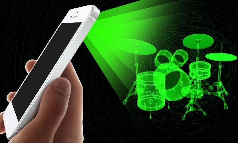 É um simulador de tambor clássico. Neste holograma de tambor de alta qualidade é projetado